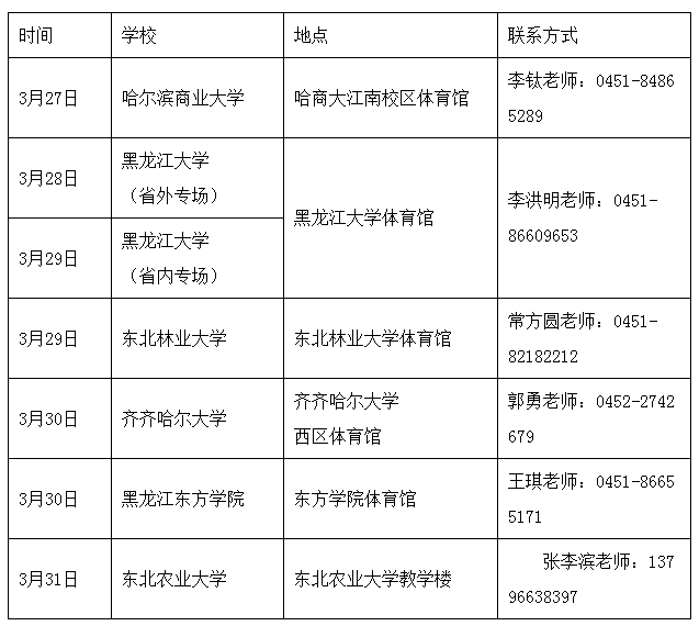 附:同期黑龍江省份部分高校招聘會(huì)安排(以召開時(shí)間先后為序)