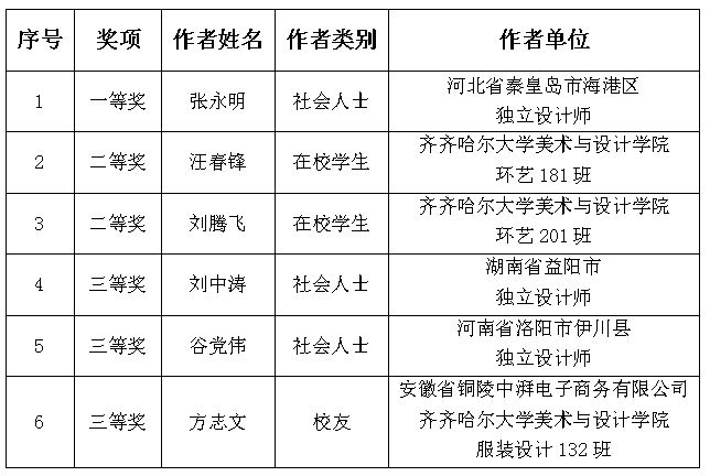 二、齊齊哈爾大學70周年校慶標識征集獲獎名單