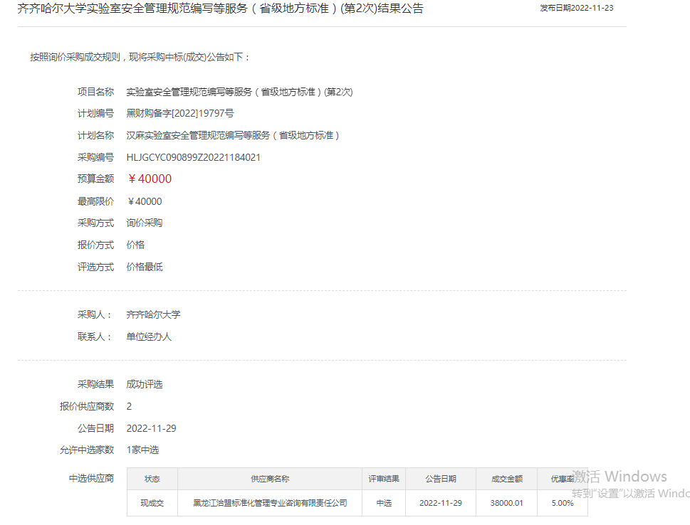 下一條:齊齊哈爾大學(xué)檢驗(yàn)檢測(cè)實(shí)驗(yàn)室廢棄物處置規(guī)范編寫(xiě)等服務(wù)(省級(jí)地方標(biāo)準(zhǔn))(第2次)結(jié)果公告(轉(zhuǎn)自黑龍江省政府采購(gòu)網(wǎng))