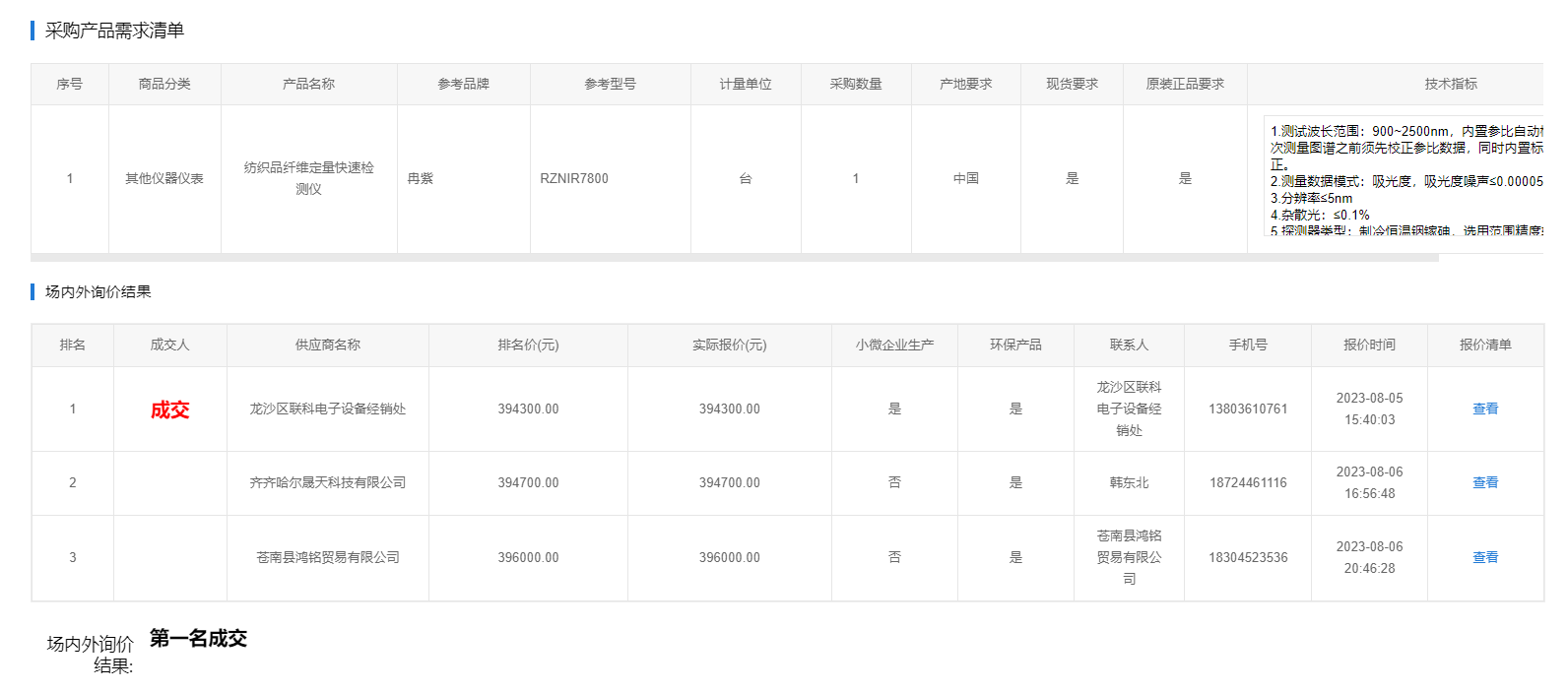 下一條:齊齊哈爾大學(xué)數(shù)字式小樣梳棉機采購項目場內(nèi)外詢價結(jié)果公告(轉(zhuǎn)自黑龍江省政府采購網(wǎng))