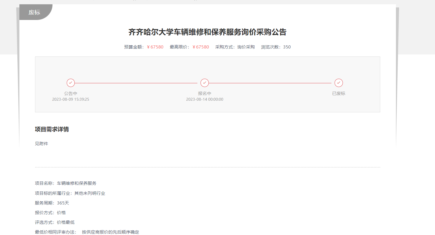 上一條:齊齊哈爾大學車輛維修和保養(yǎng)服務(第2次)詢價采購公告(轉自黑龍江省政府采購網)
