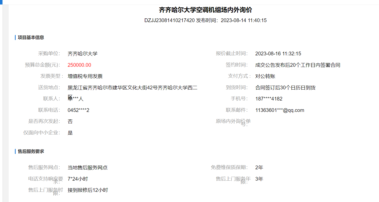 下一條:齊齊哈爾大學(xué)車輛維修和保養(yǎng)服務(wù)(第2次)詢價(jià)采購(gòu)公告(轉(zhuǎn)自黑龍江省政府采購(gòu)網(wǎng))