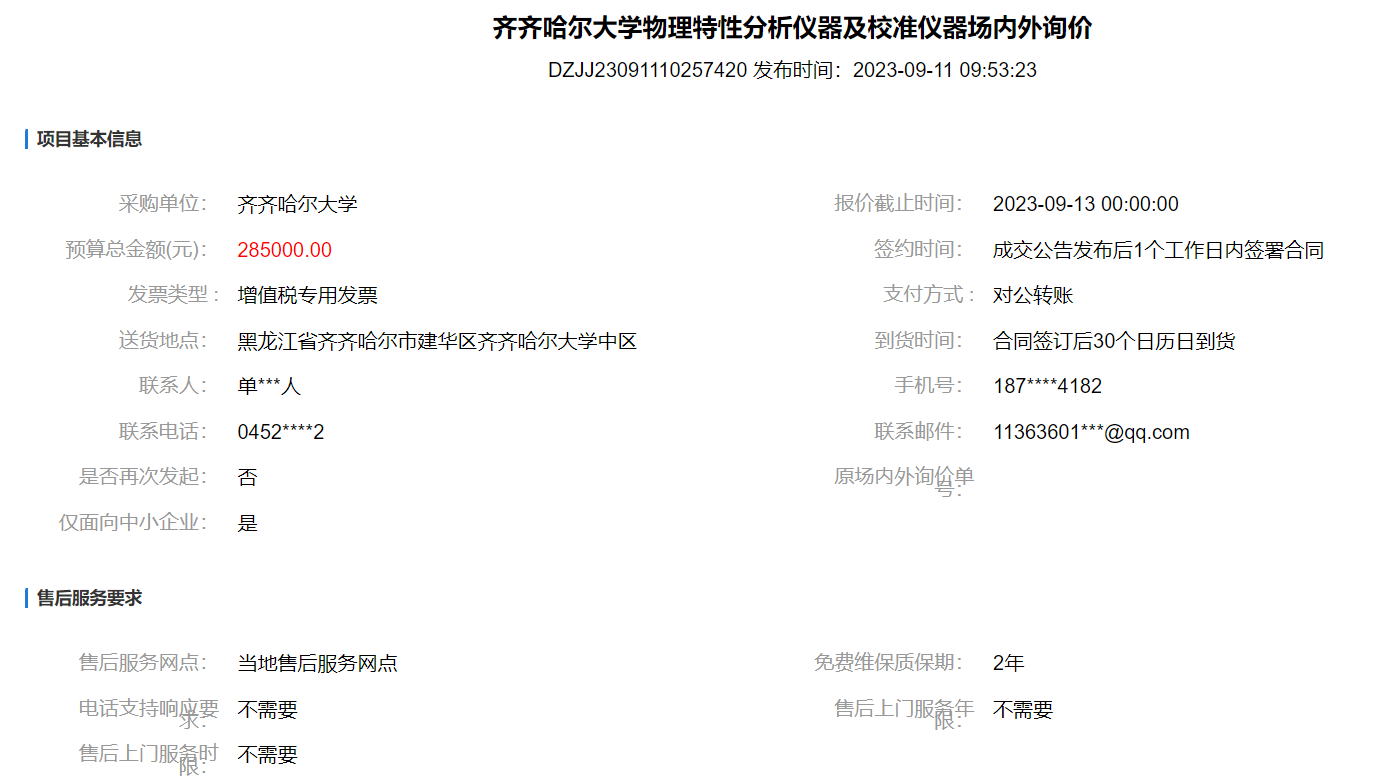 上一條:齊齊哈爾大學物理特性分析儀器及校準儀器場內(nèi)外詢價(DZJJ23091110277420)結(jié)果公告(轉(zhuǎn)自黑龍江省政府采購網(wǎng))
