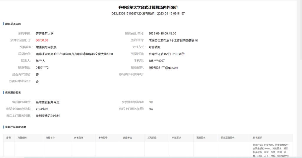 上一條:齊齊哈爾大學(xué)臺(tái)式計(jì)算機(jī)比價(jià)采購(gòu)(結(jié)果公告)(轉(zhuǎn)自黑龍江省政府采購(gòu)網(wǎng))