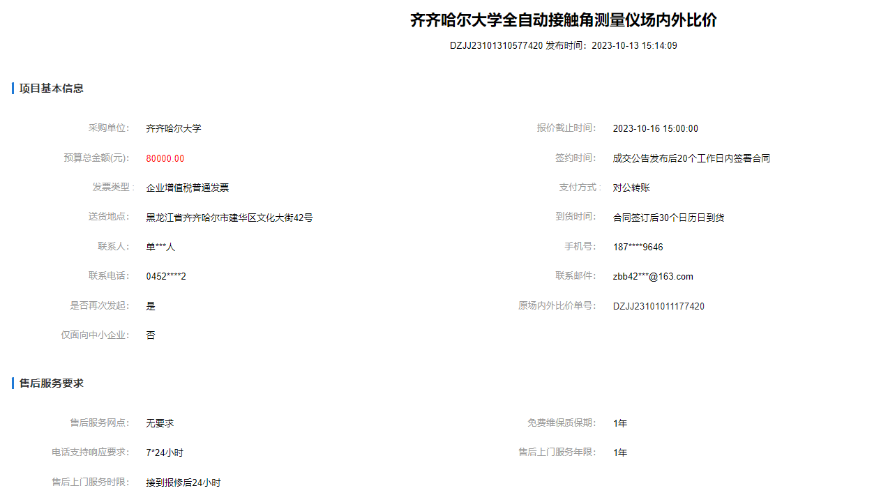 上一條:齊齊哈爾大學(xué)全自動(dòng)接觸角測(cè)量儀場(chǎng)內(nèi)外比價(jià)(結(jié)果)(轉(zhuǎn)自黑龍江省政府采購網(wǎng))
