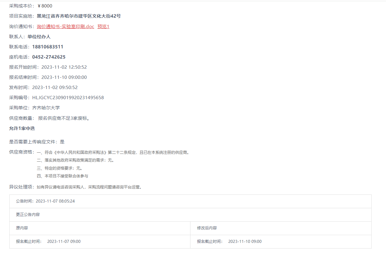 上一條:齊齊哈爾大學(xué)就業(yè)質(zhì)量調(diào)研撰寫服務(wù)詢價采購公告(轉(zhuǎn)自黑龍江省政府采購網(wǎng))
