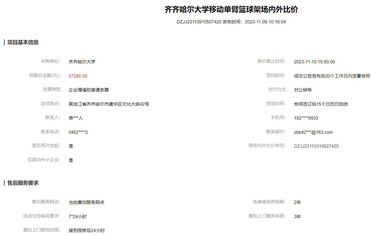 下一條:齊齊哈爾大學(xué)移動(dòng)單臂籃球架場(chǎng)內(nèi)外比價(jià)(廢標(biāo))(轉(zhuǎn)自黑龍江省政府采購網(wǎng))