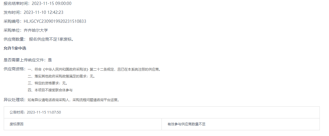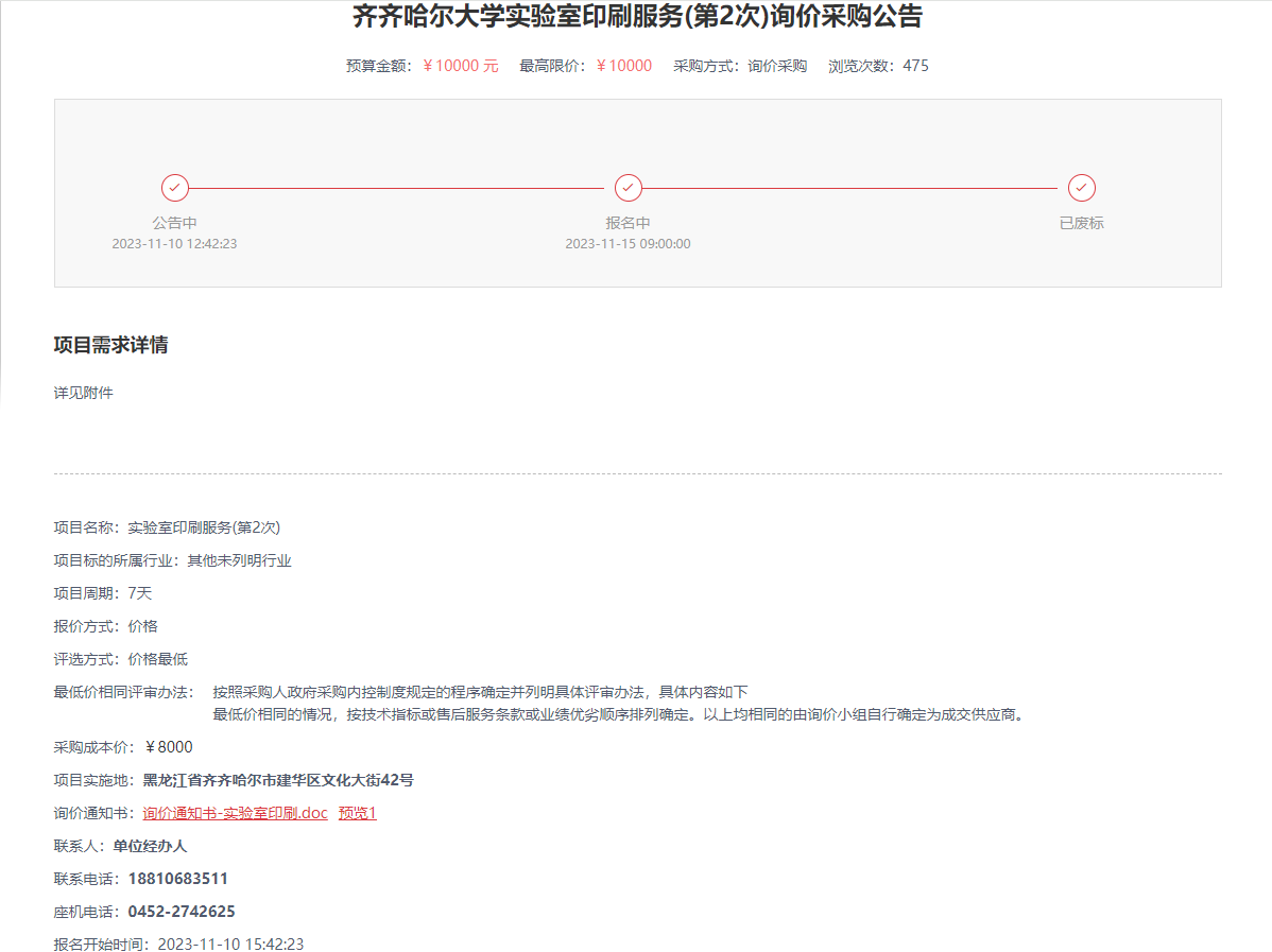 上一條:齊齊哈爾大學(xué)實驗室印刷服務(wù)(第3次)詢價采購公告(轉(zhuǎn)自黑龍江省政府采購網(wǎng))
