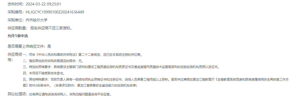 下一條:齊齊哈爾大學(xué)2024年碩士專業(yè)學(xué)位論文評(píng)閱服務(wù)競(jìng)爭(zhēng)性談判公告(轉(zhuǎn)自黑龍江省政府采購網(wǎng))