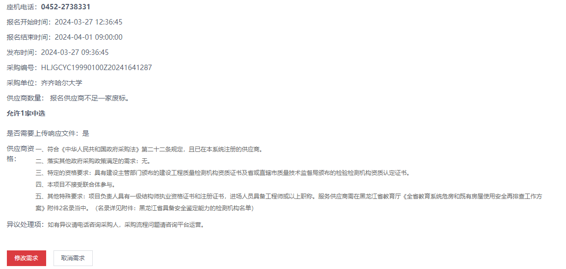 下一條:齊齊哈爾大學(xué)房屋安全性鑒定服務(wù)項目比價采購公告(轉(zhuǎn)自黑龍江省政府采購網(wǎng))