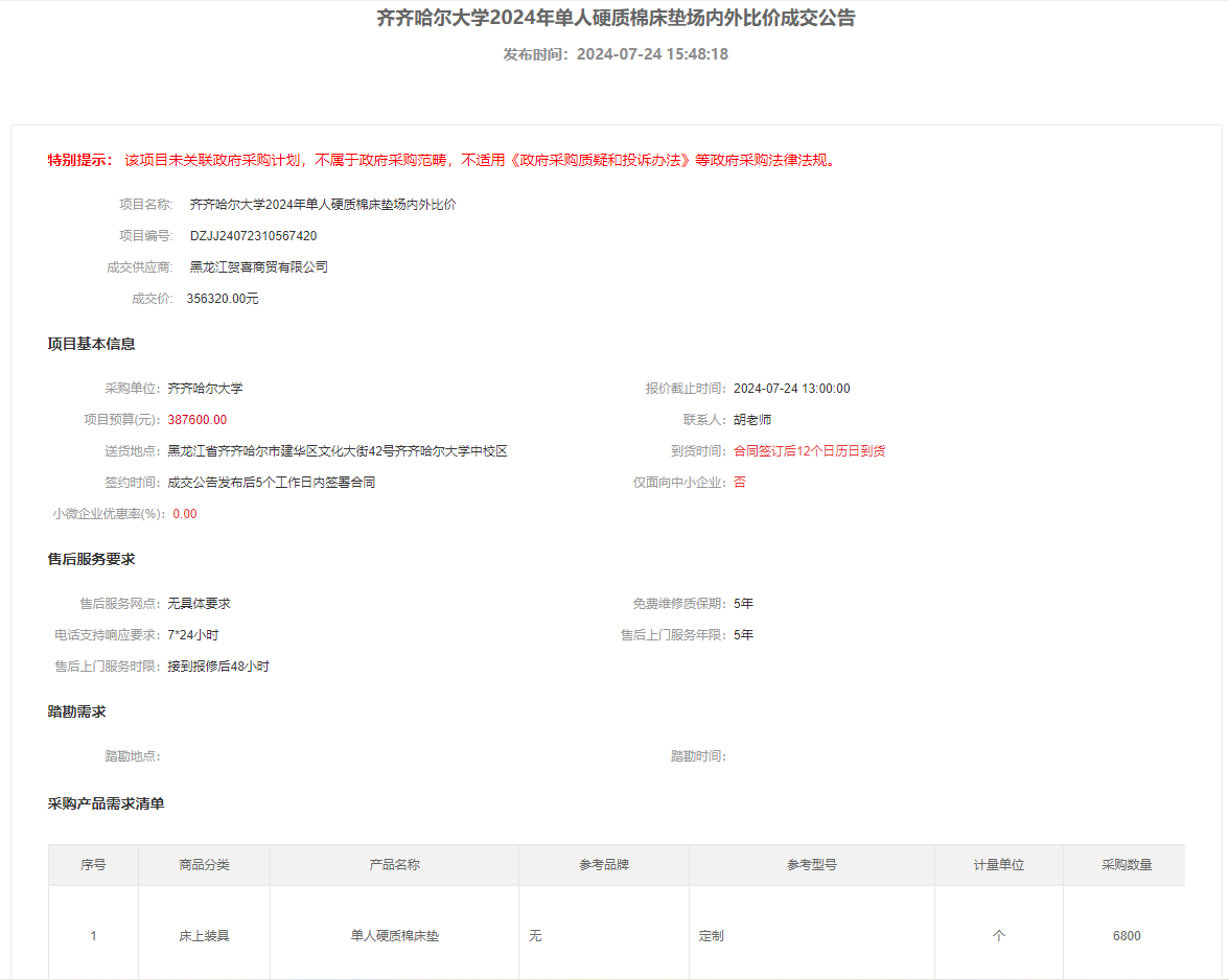 上一條:齊齊哈爾大學(xué)2024年床上用品(內(nèi)芯類)采購項(xiàng)目成交公告(轉(zhuǎn)自中國政府采購網(wǎng))