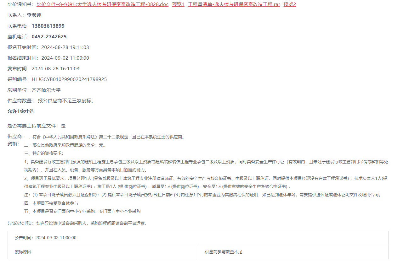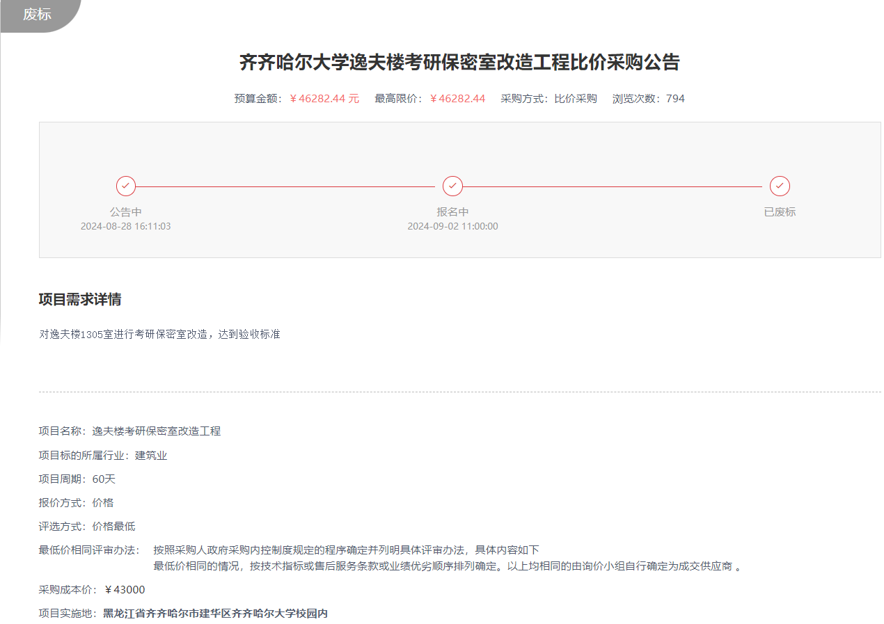下一條:齊齊哈爾大學(xué)逸夫樓考研保密室改造工程比價(jià)采購(gòu)公告(轉(zhuǎn)自黑龍江省政府采購(gòu)網(wǎng))
