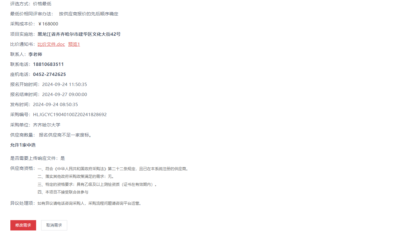 下一條:齊齊哈爾大學(xué)逸夫樓考研保密室改造工程(第4次)比價(jià)采購公告(轉(zhuǎn)自黑龍江省政府采購網(wǎng))