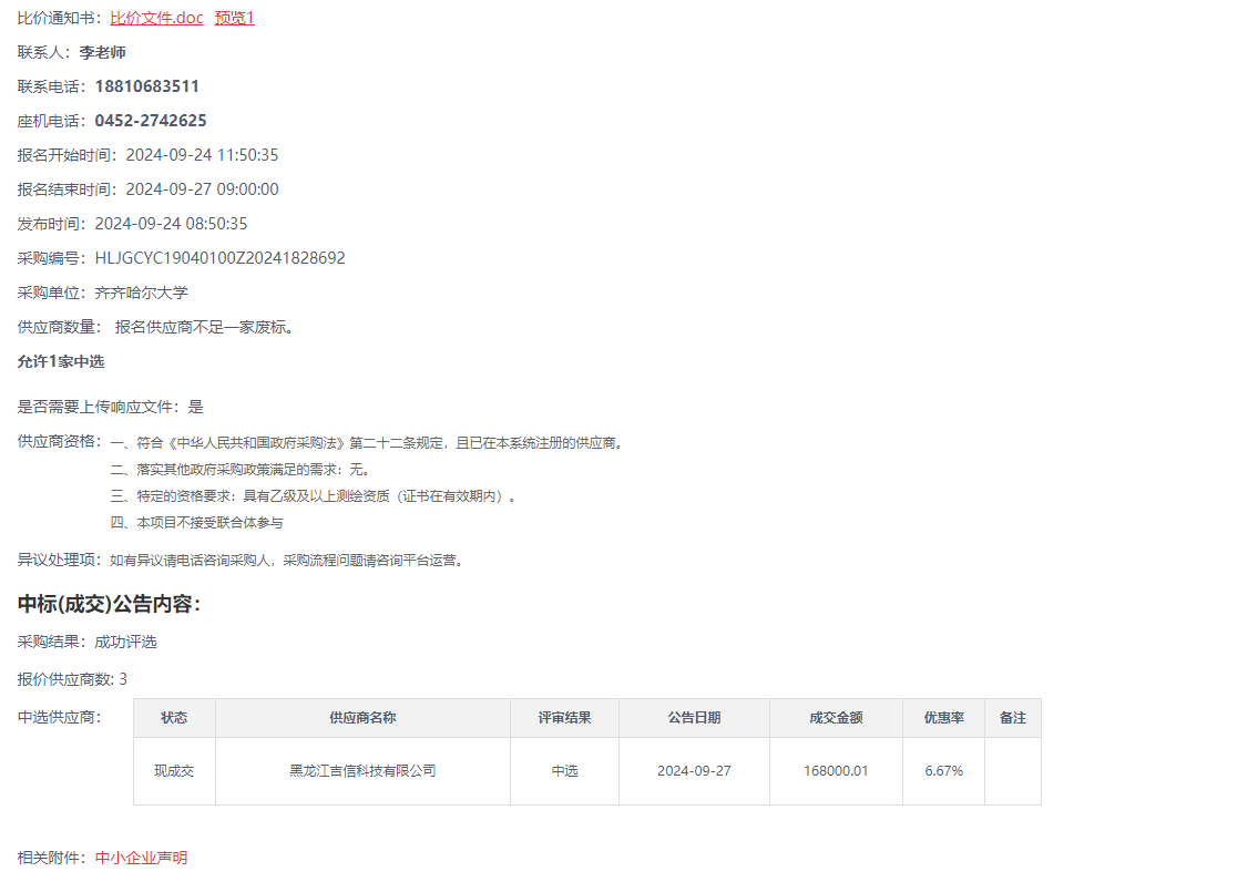 上一條:齊齊哈爾大學小學教育專業(yè)實踐實訓室設(shè)備采購項目采購更正公告(第一次)(轉(zhuǎn)自黑龍江省政府采購網(wǎng))
