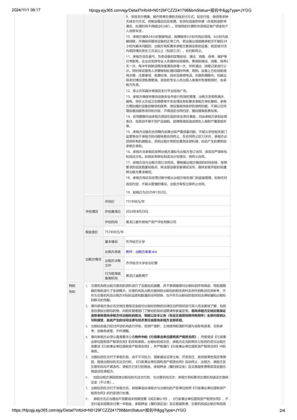 上一條:齊齊哈爾大學(xué)學(xué)生公寓及部分教學(xué)樓直飲水機(jī)點(diǎn)位公開(kāi)招租(國(guó)資監(jiān)測(cè)編號(hào)GR2024HL2004162)(轉(zhuǎn)自黑龍江聯(lián)合產(chǎn)權(quán)交易所)