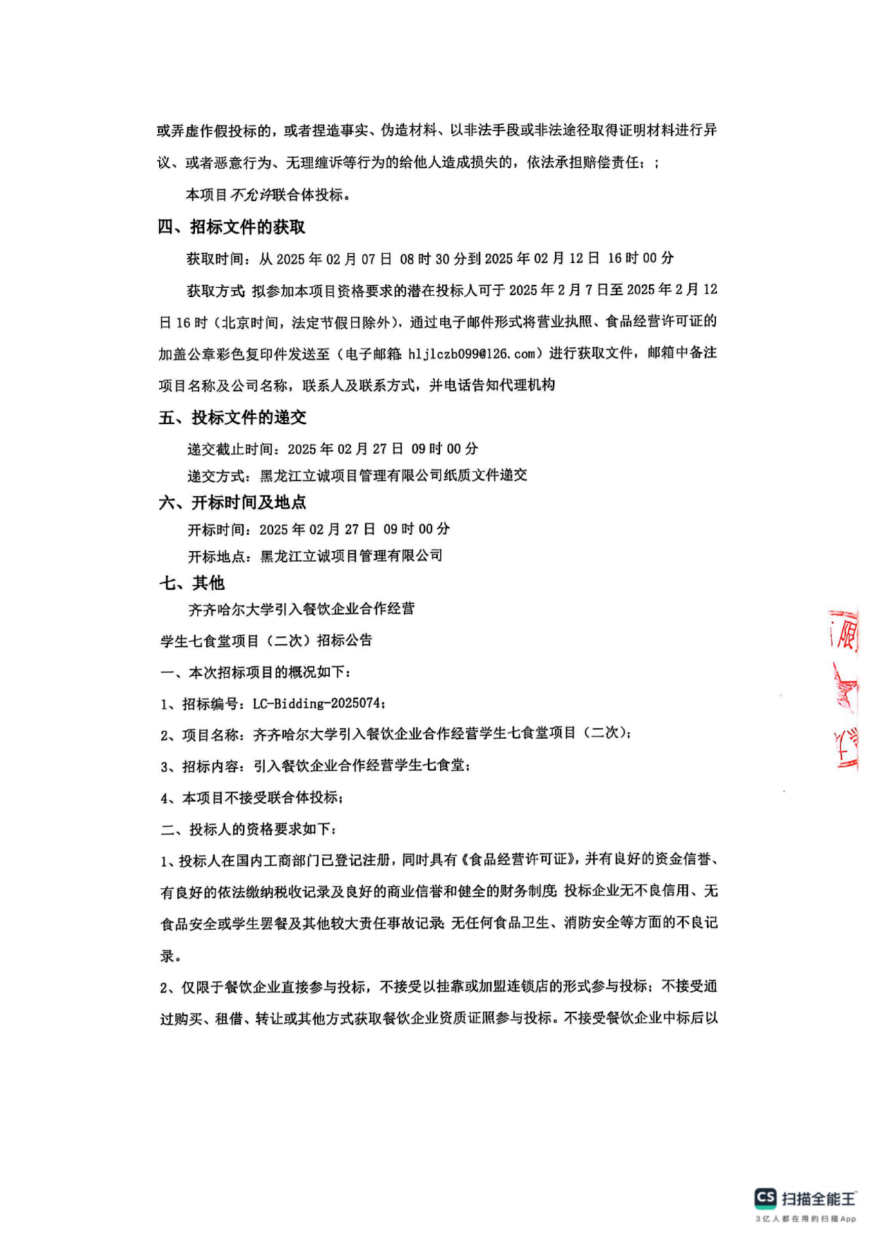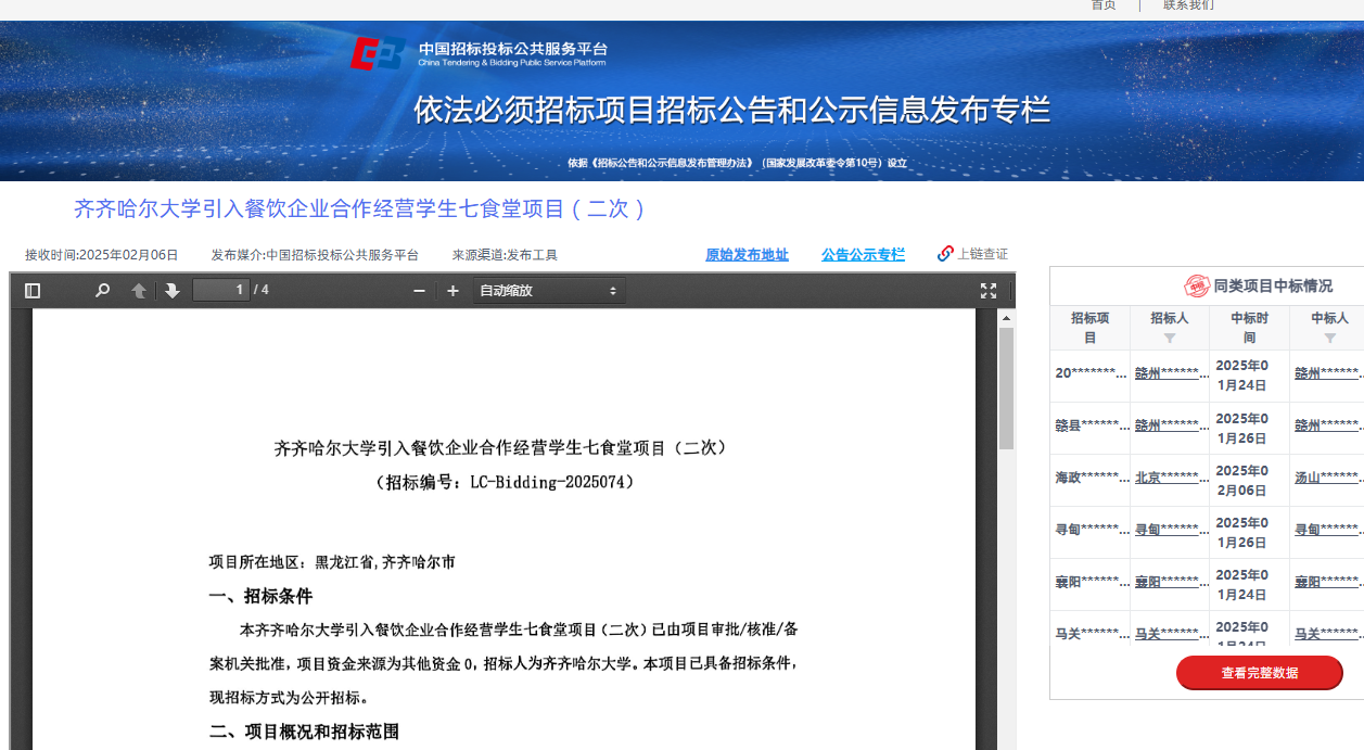 下一條:齊齊哈爾大學(xué)引入餐飲企業(yè)合作經(jīng)營學(xué)生七食堂項目(轉(zhuǎn)自中國招標(biāo)投標(biāo)公共服務(wù)平臺)