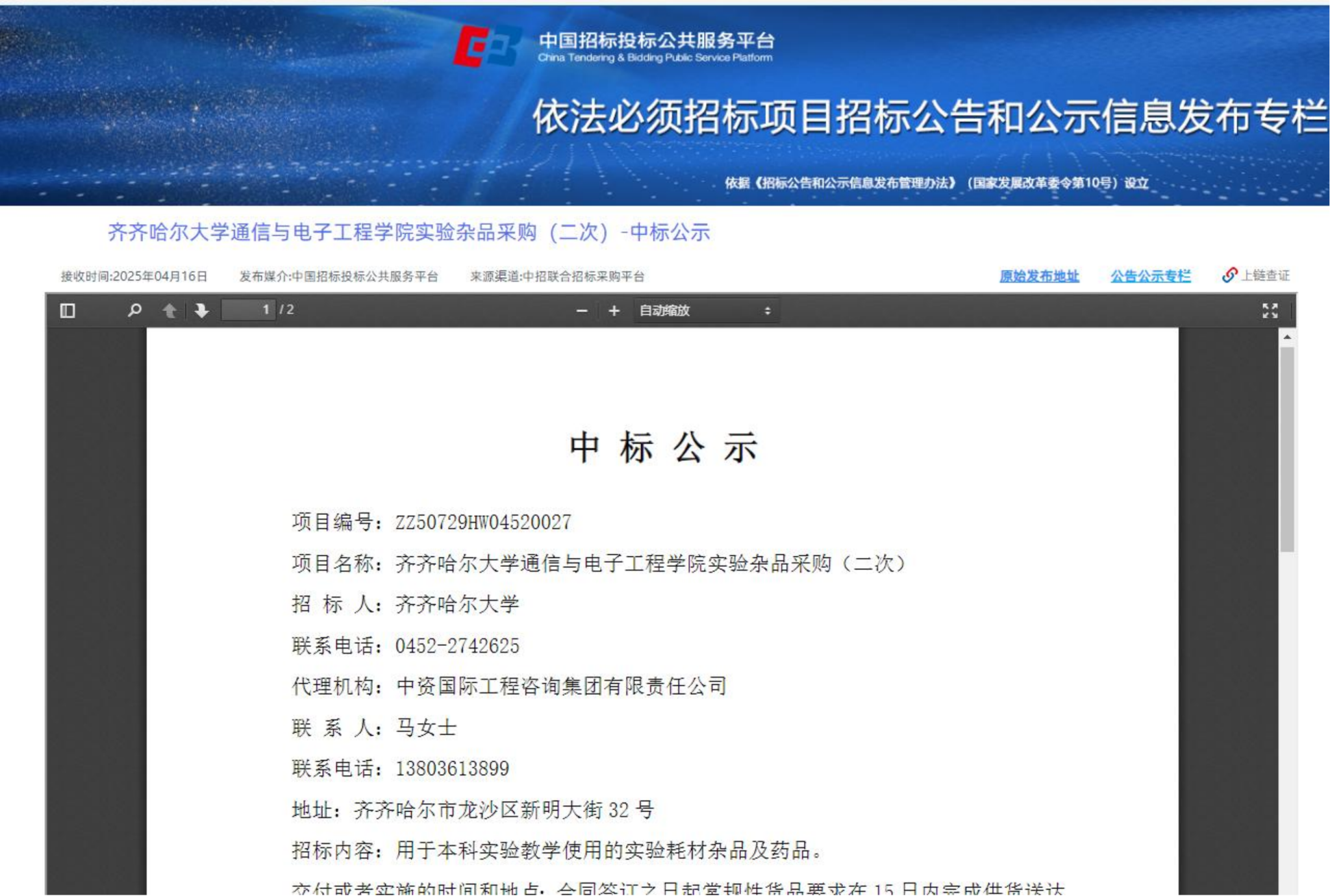 下一條:齊齊哈爾大學(xué)生命科學(xué)與農(nóng)林學(xué)院一流專業(yè)建設(shè)項(xiàng)目設(shè)備采購(gòu)結(jié)果公告(轉(zhuǎn)自黑龍江省政府采購(gòu)網(wǎng))