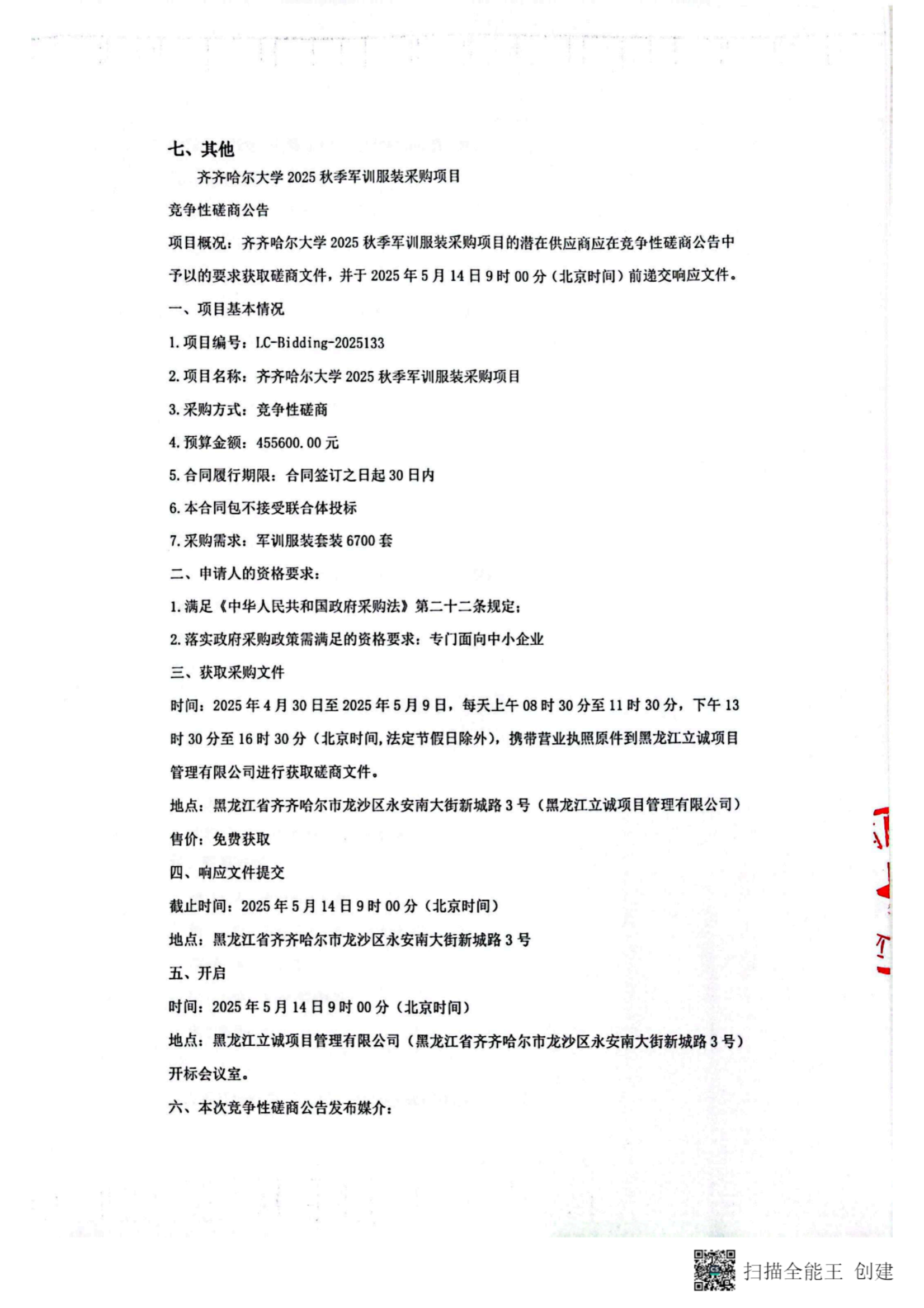 下一條:齊齊哈爾大學(xué)學(xué)生公寓物業(yè)服務(wù)采購項(xiàng)目結(jié)果公告(轉(zhuǎn)自黑龍江省政府采購網(wǎng))