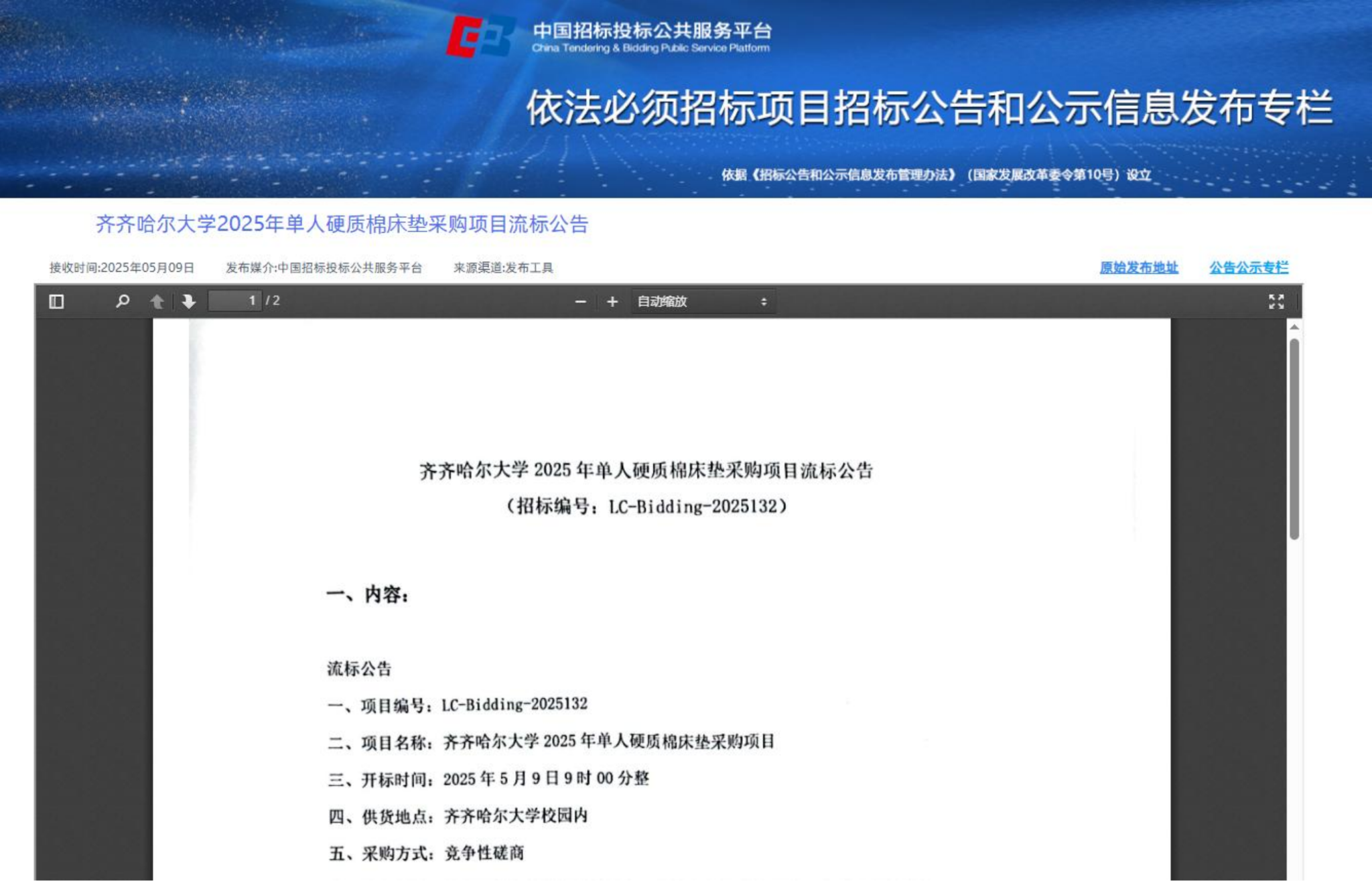 上一條:齊齊哈爾大學(xué)南校區(qū)垃圾清運(yùn)(二次)競(jìng)爭(zhēng)性談判公告(轉(zhuǎn)自中國(guó)招標(biāo)投標(biāo)公共服務(wù)平臺(tái))