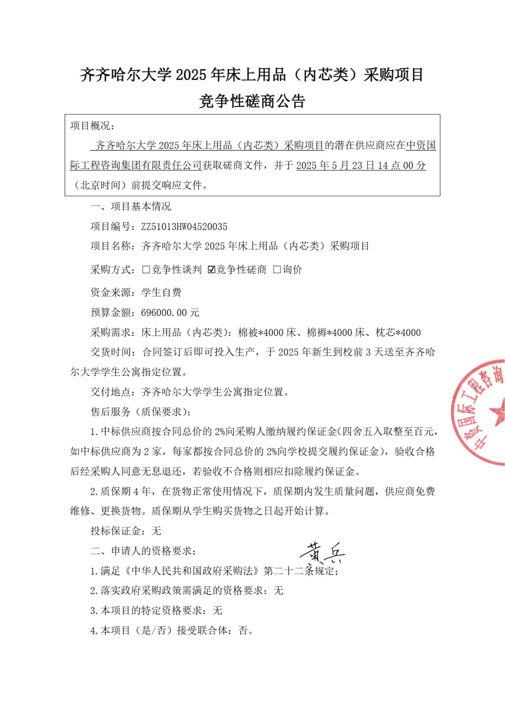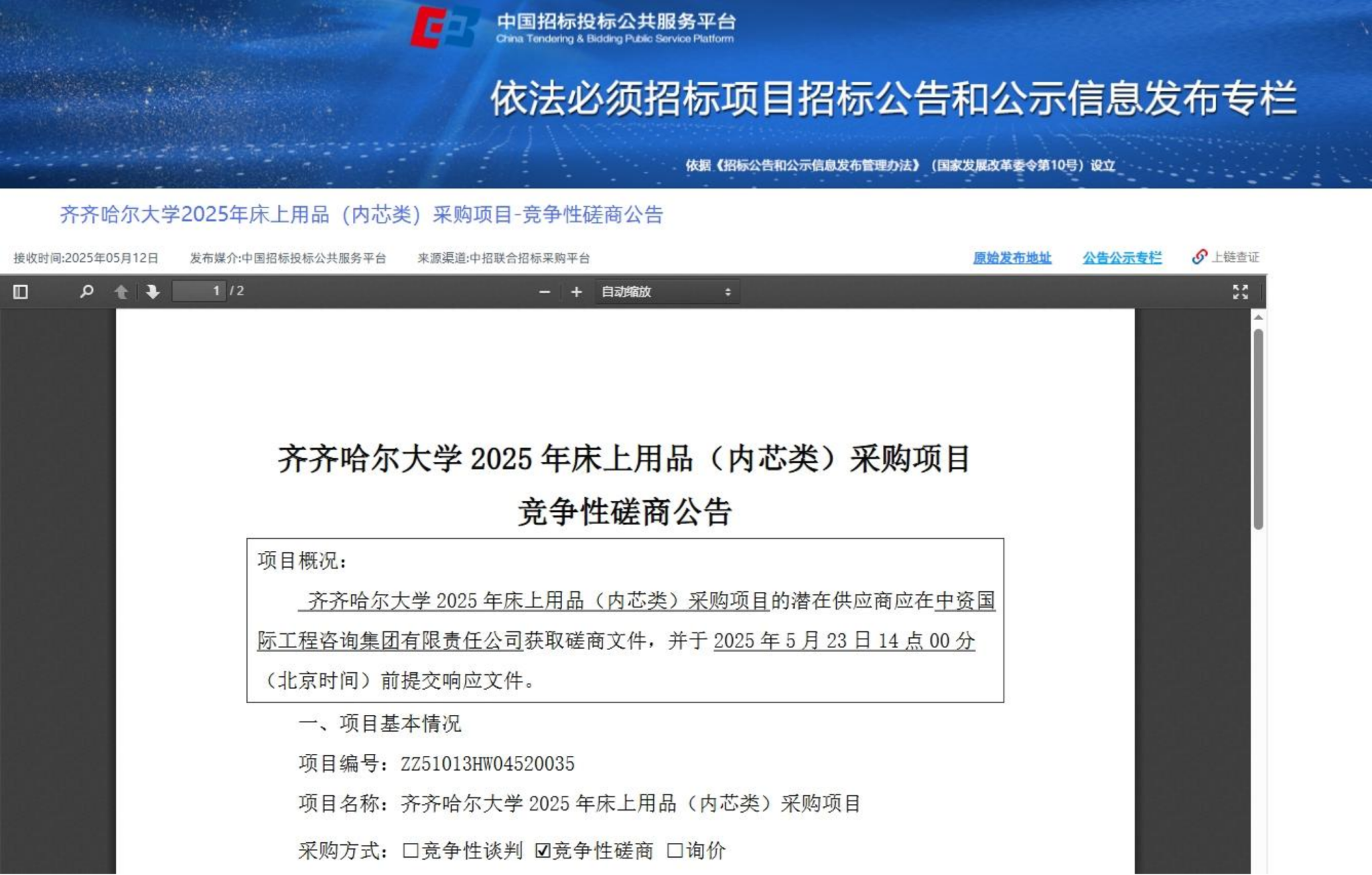 下一條:齊齊哈爾大學2025年床上用品(單罩類)采購項目競爭性磋商公告(轉(zhuǎn)自中國招標投標公共服務(wù)平臺)
