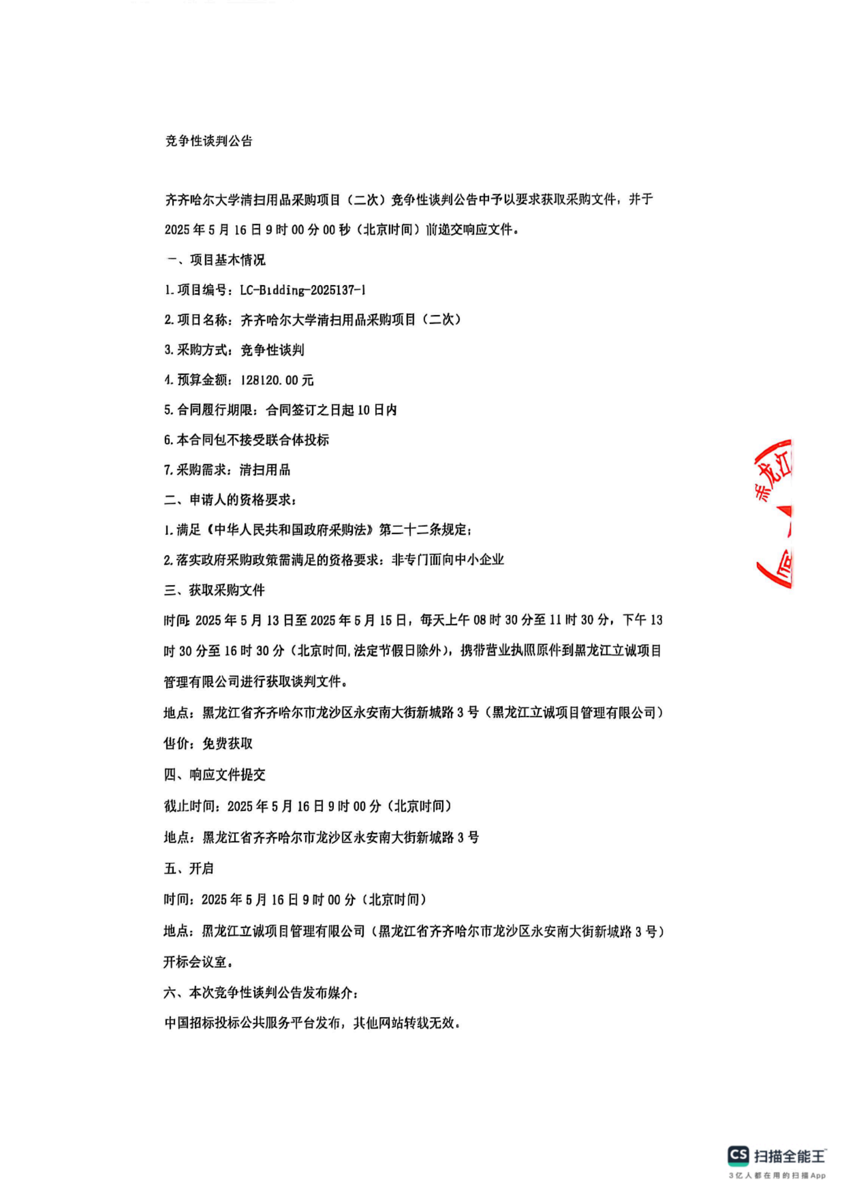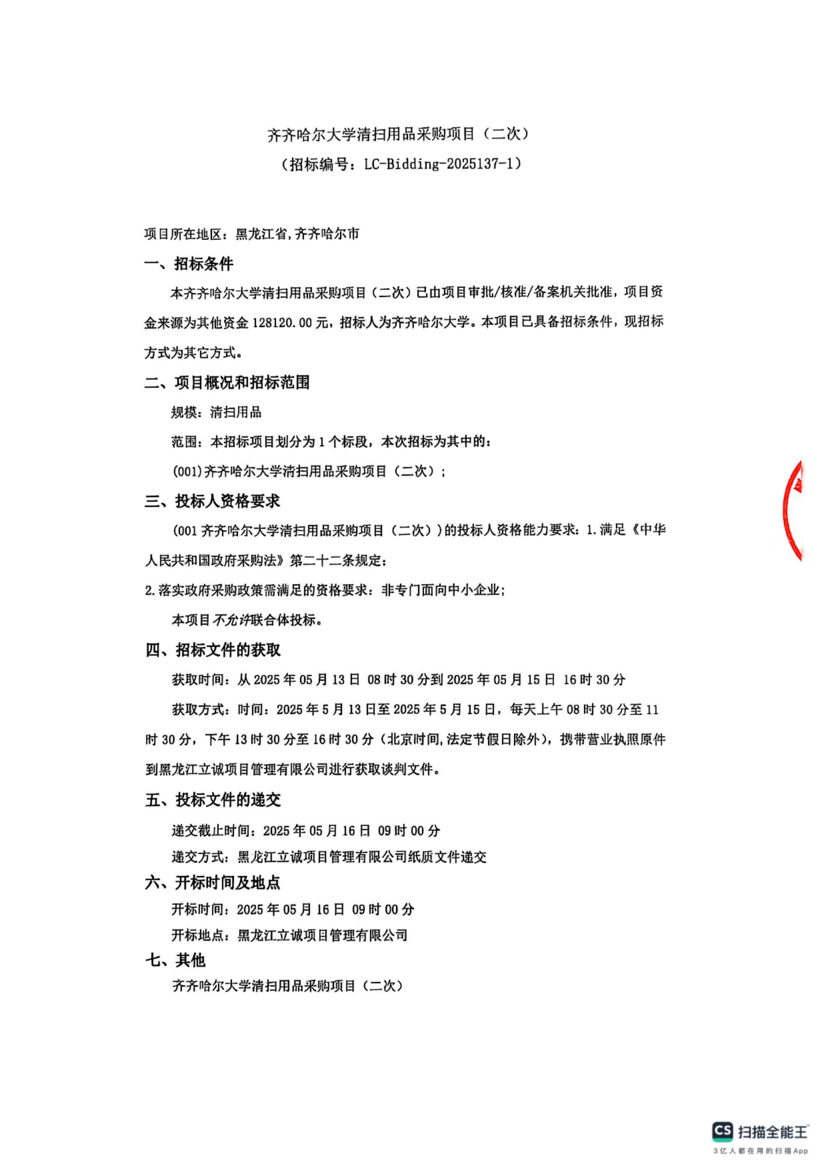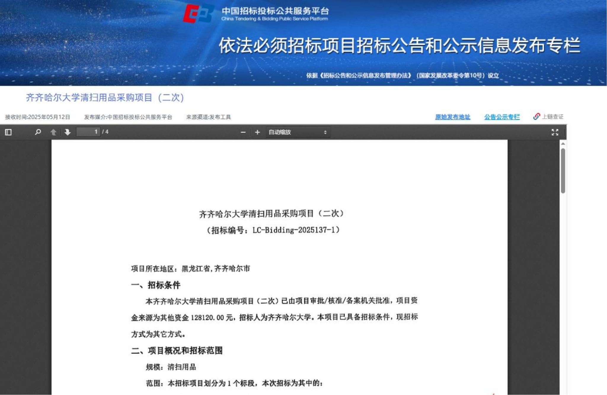 下一條:齊齊哈爾大學(xué)清掃用品采購(gòu)項(xiàng)目廢標(biāo)公告(轉(zhuǎn)自中國(guó)招標(biāo)投標(biāo)公共服務(wù)平臺(tái))