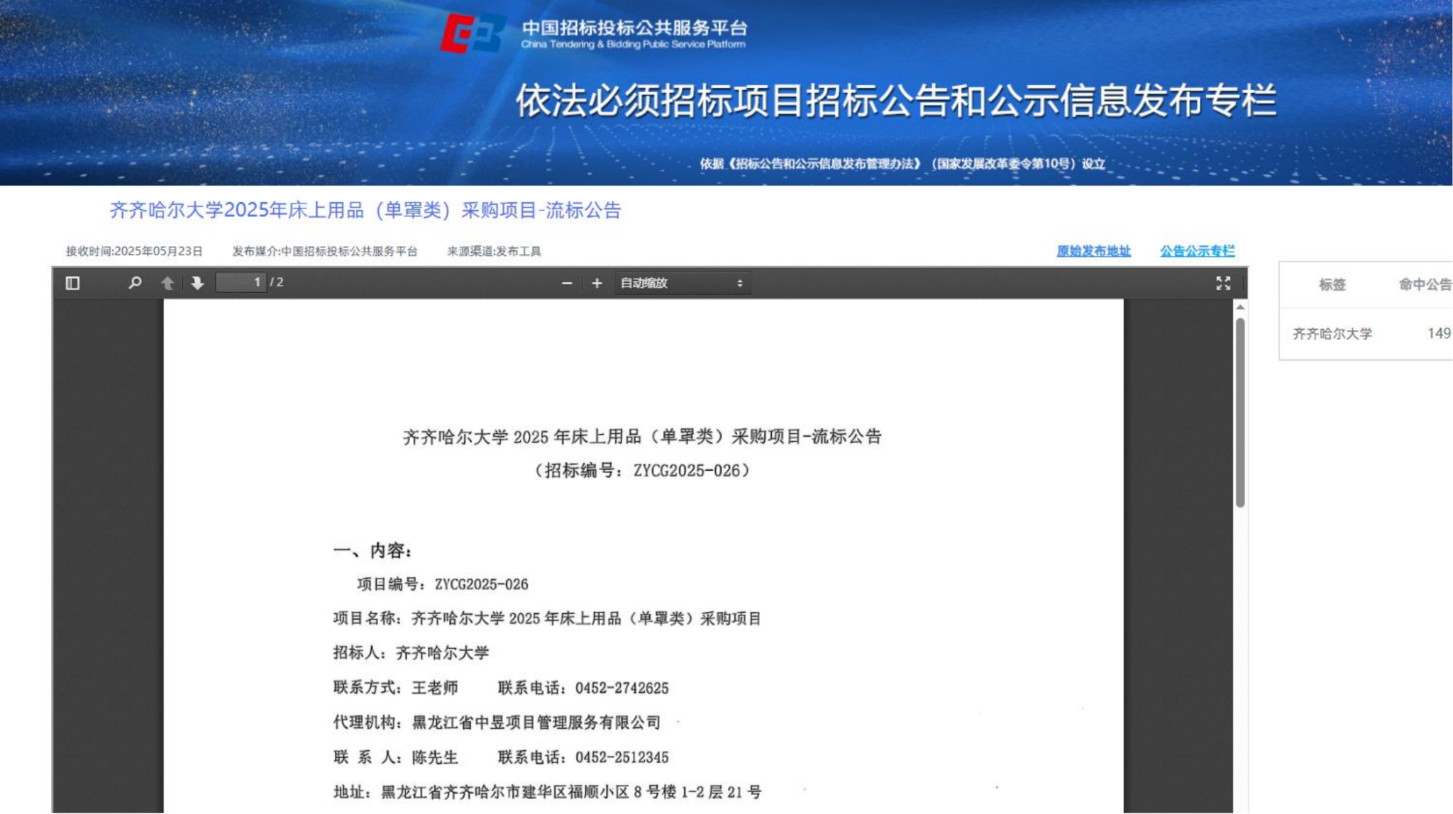 上一條:齊齊哈爾大學(xué)2025年床上用品(內(nèi)芯類)采購(gòu)項(xiàng)目-流標(biāo)公告(轉(zhuǎn)自中國(guó)招標(biāo)投標(biāo)公共服務(wù)平臺(tái))