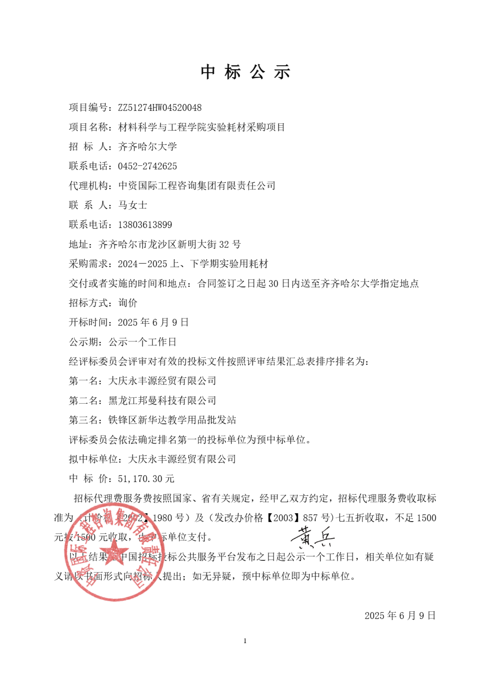 上一條:齊齊哈爾大學2025年秋季學期工程訓練中心金工實習耗材雜品購置項目結(jié)果公告(轉(zhuǎn)自中國招標投標公共服務平臺)