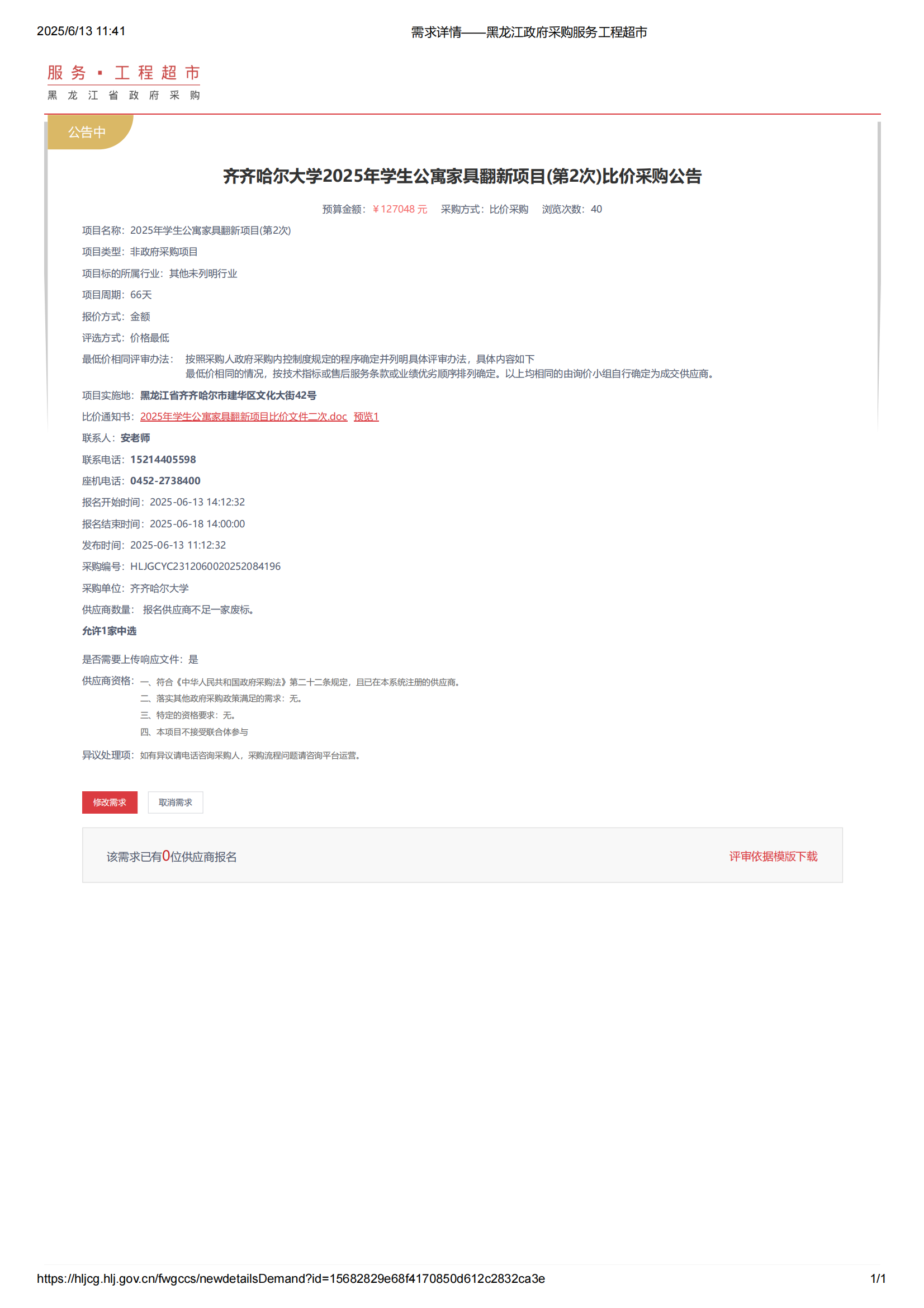 下一條:齊齊哈爾大學2025年學生公寓家具翻新項目比價采購公告(廢標公告)(轉(zhuǎn)自黑龍江省政府采購網(wǎng))
