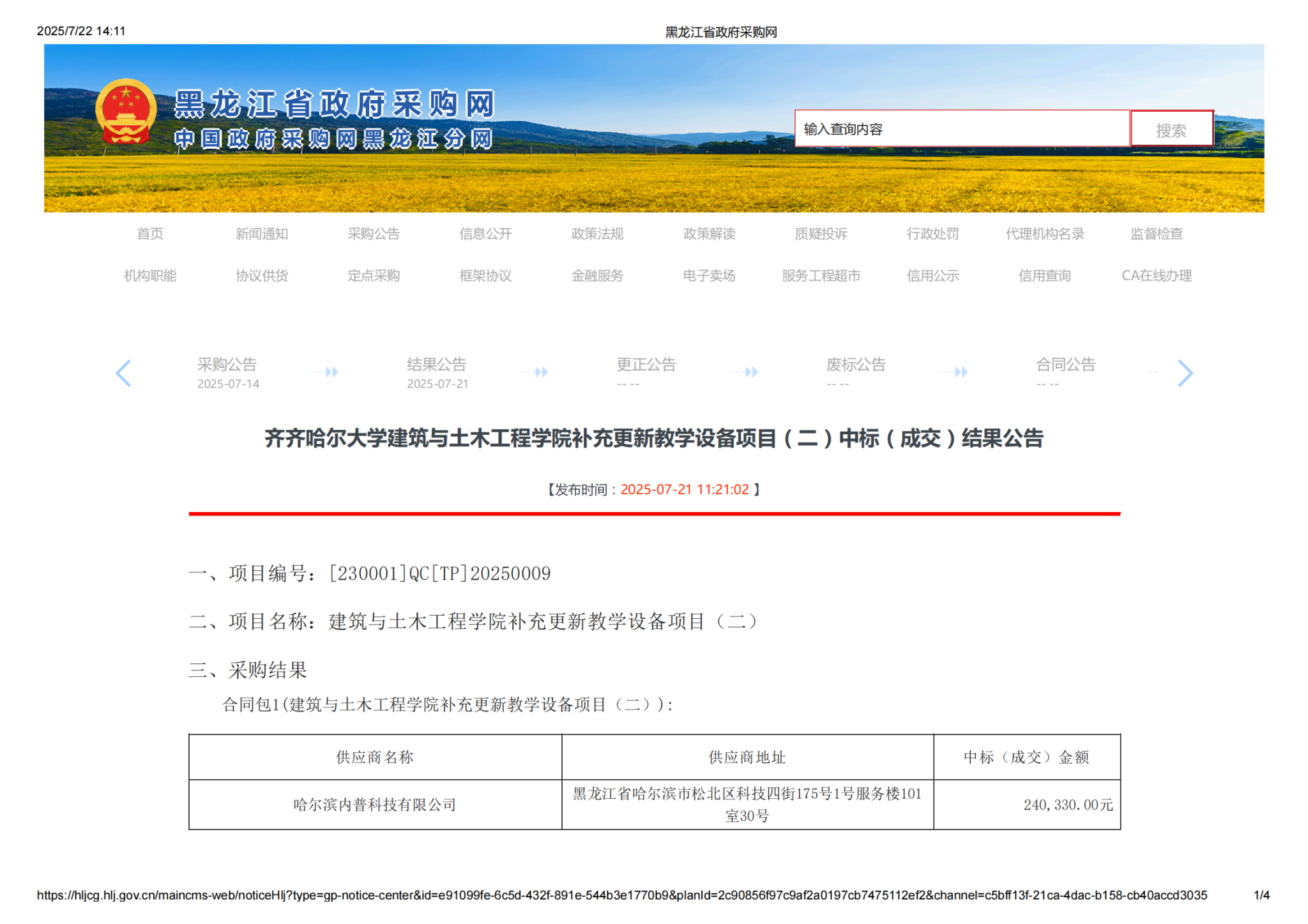 下一條:齊齊哈爾大學(xué)建筑與土木工程學(xué)院補(bǔ)充更新教學(xué)設(shè)備項(xiàng)目(一)中標(biāo)(成交)結(jié)果公告(轉(zhuǎn)自黑龍江省政府采購(gòu)網(wǎng))