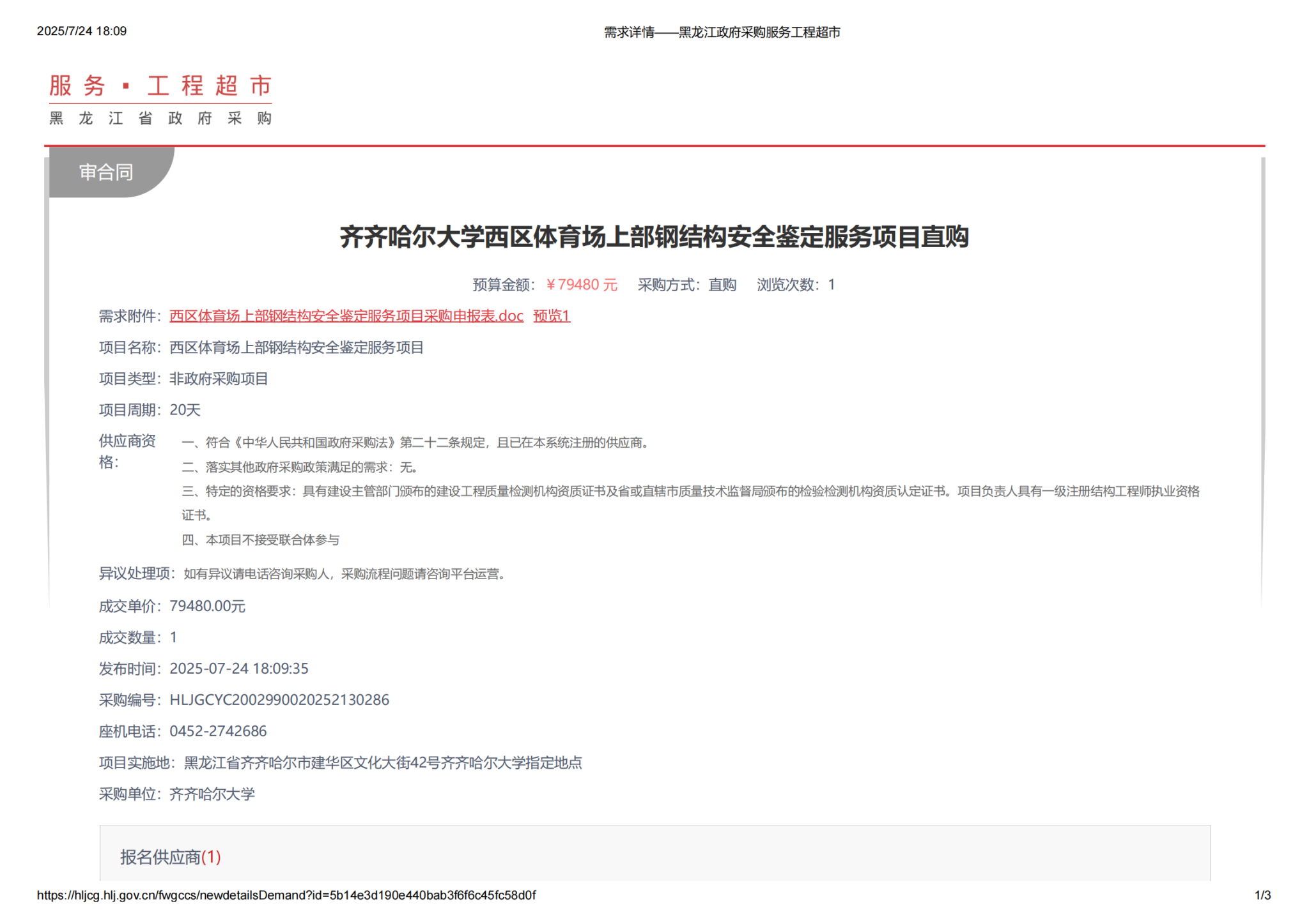 上一條:齊齊哈爾大學(xué)2025年水暖管網(wǎng)及浴池維修項(xiàng)目中標(biāo)(成交)結(jié)果公告(轉(zhuǎn)自黑龍江省政府采購(gòu)網(wǎng))