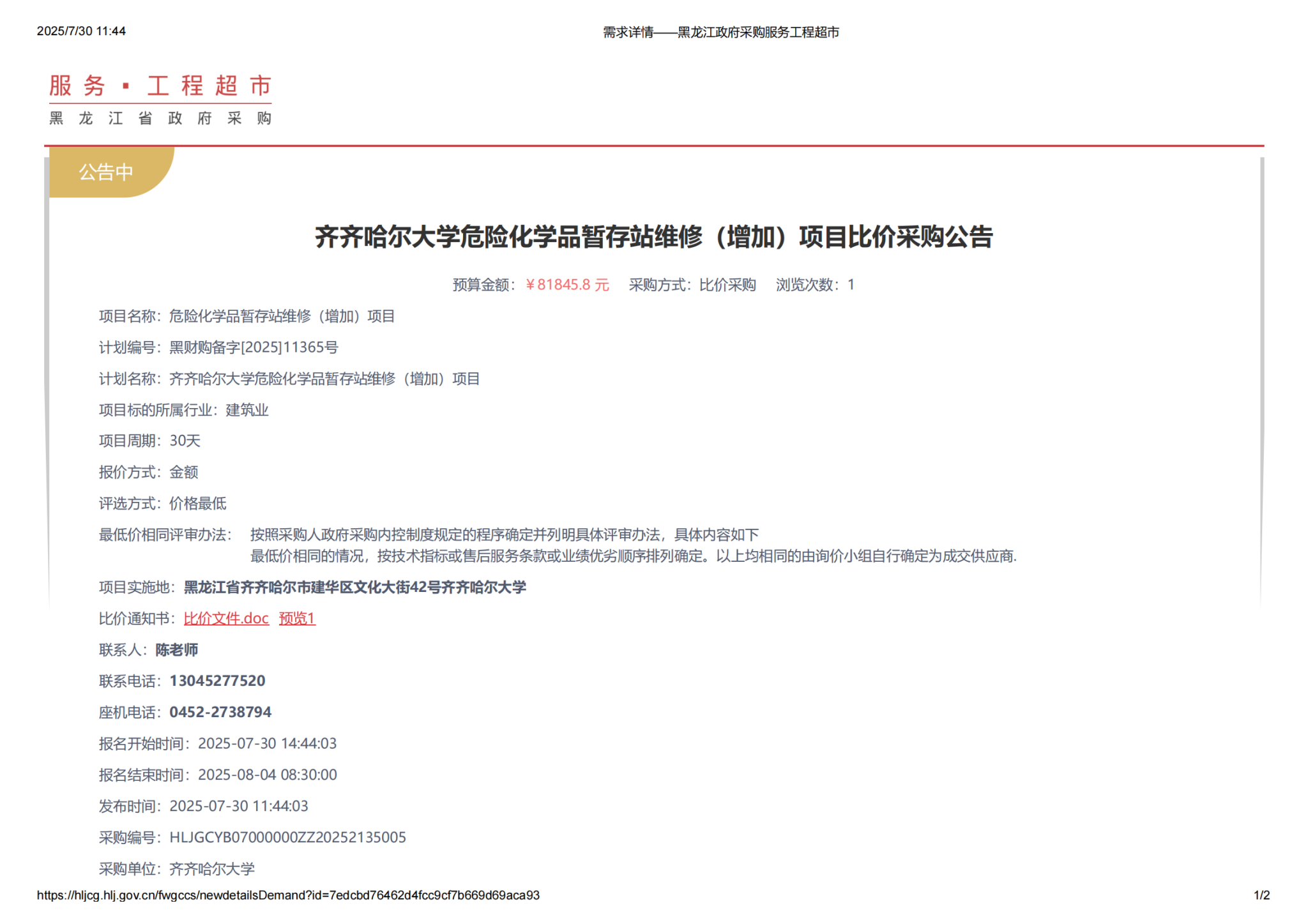 下一條:齊齊哈爾大學(xué)2025年水電暖房等應(yīng)急及零星維修服務(wù)(第二批)(二次)中標(biāo)(成交)結(jié)果公告(轉(zhuǎn)自黑龍江省政府采購(gòu)網(wǎng))
