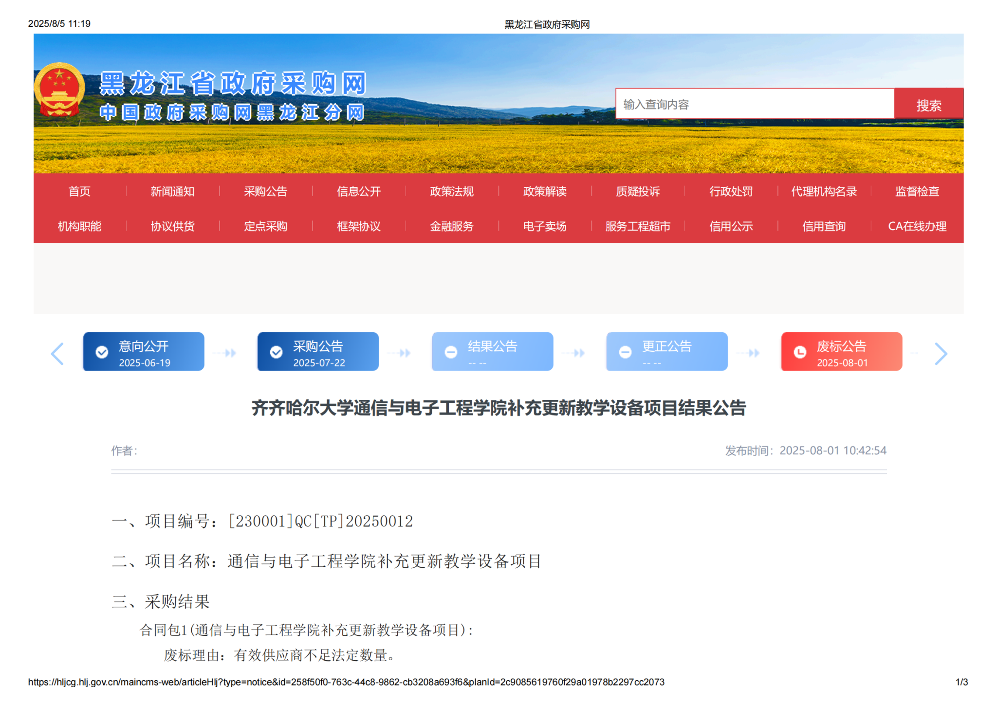 下一條:體育學(xué)院更新補(bǔ)充教學(xué)設(shè)備項(xiàng)目(二次)流標(biāo)公告(轉(zhuǎn)自中國招標(biāo)投標(biāo)公共服務(wù)平臺(tái))