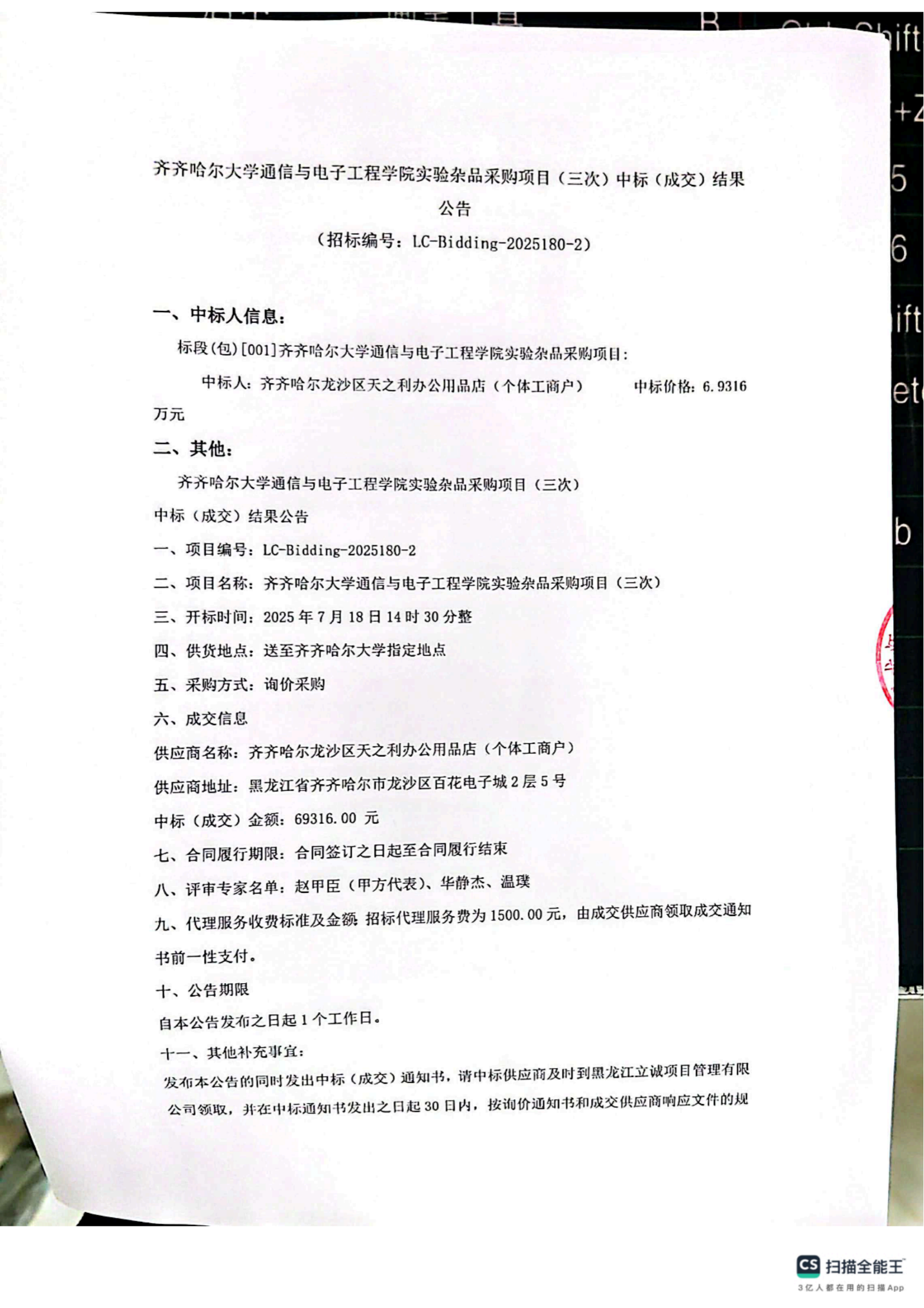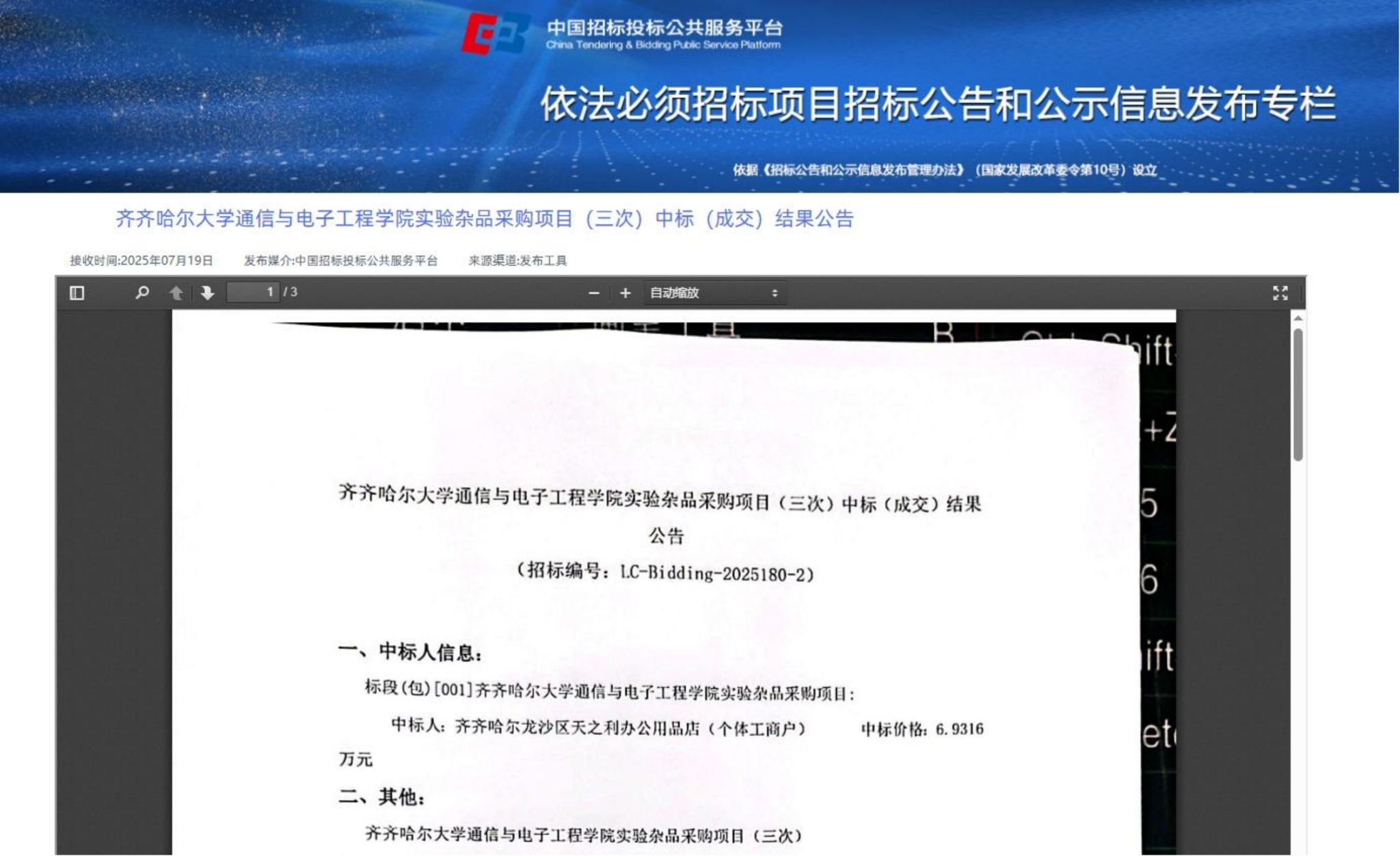 下一條:齊齊哈爾大學(xué)通信與電子工程學(xué)院補(bǔ)充更新教學(xué)設(shè)備項(xiàng)目結(jié)果公告(廢標(biāo))(轉(zhuǎn)自黑龍江省政府采購網(wǎng))