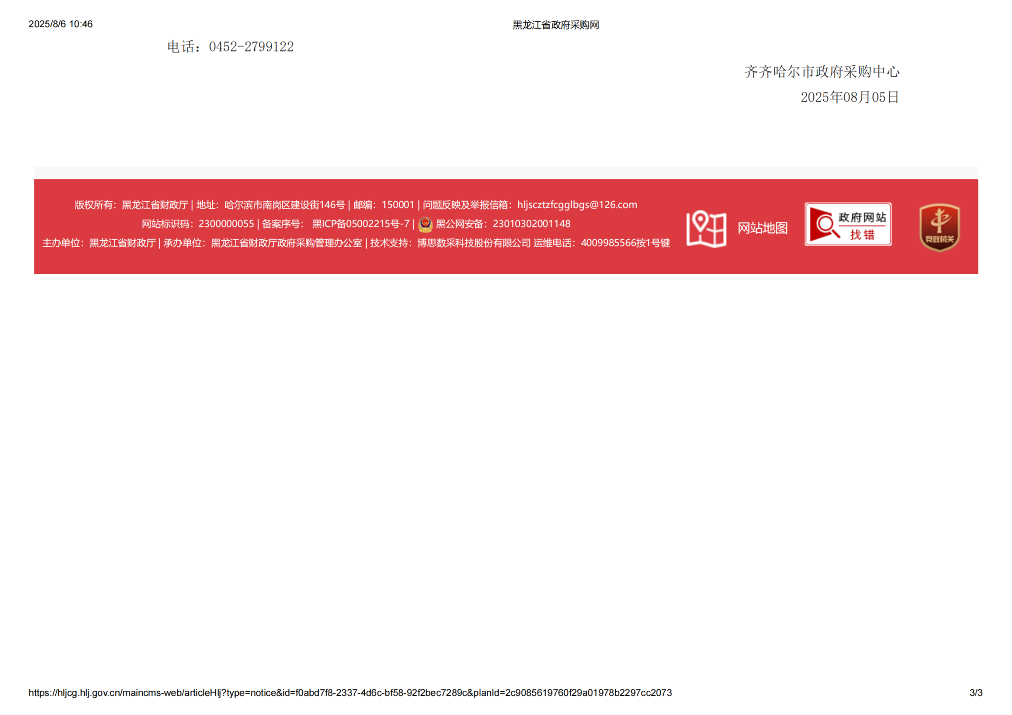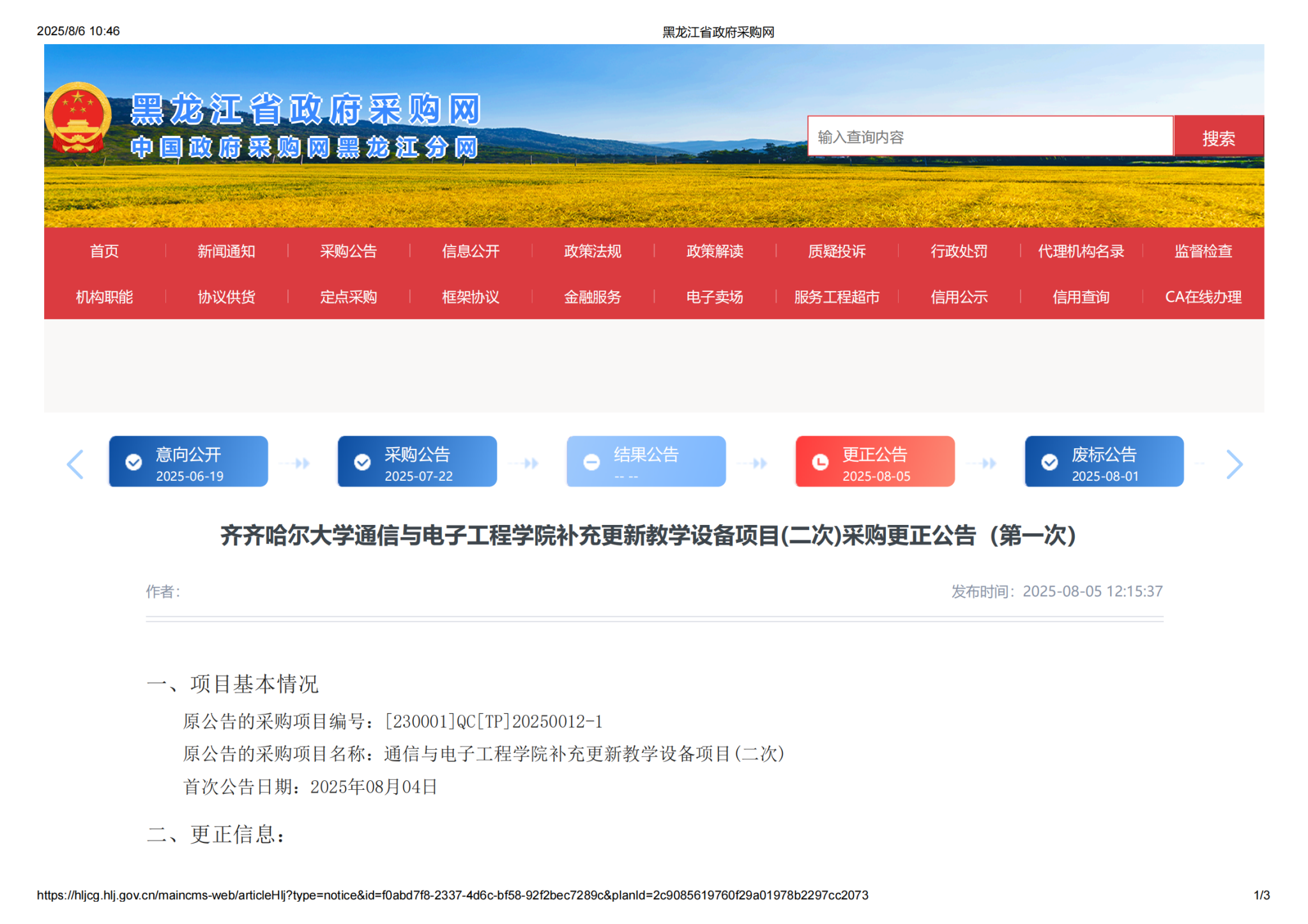 下一條:齊齊哈爾大學危險化學品暫存站維修(增加)項目(第2次)比價采購公告(轉(zhuǎn)自黑龍江省政府采購網(wǎng))