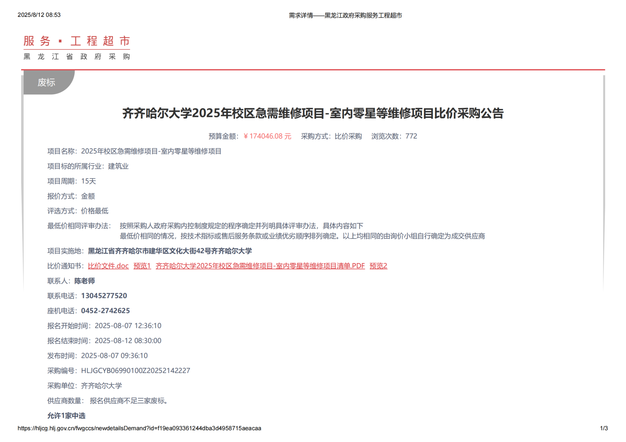 下一條:齊齊哈爾大學(xué)校門門衛(wèi)及樓宇安保服務(wù)外包項目中標(成交)結(jié)果公告(轉(zhuǎn)自黑龍江省政府采購網(wǎng))