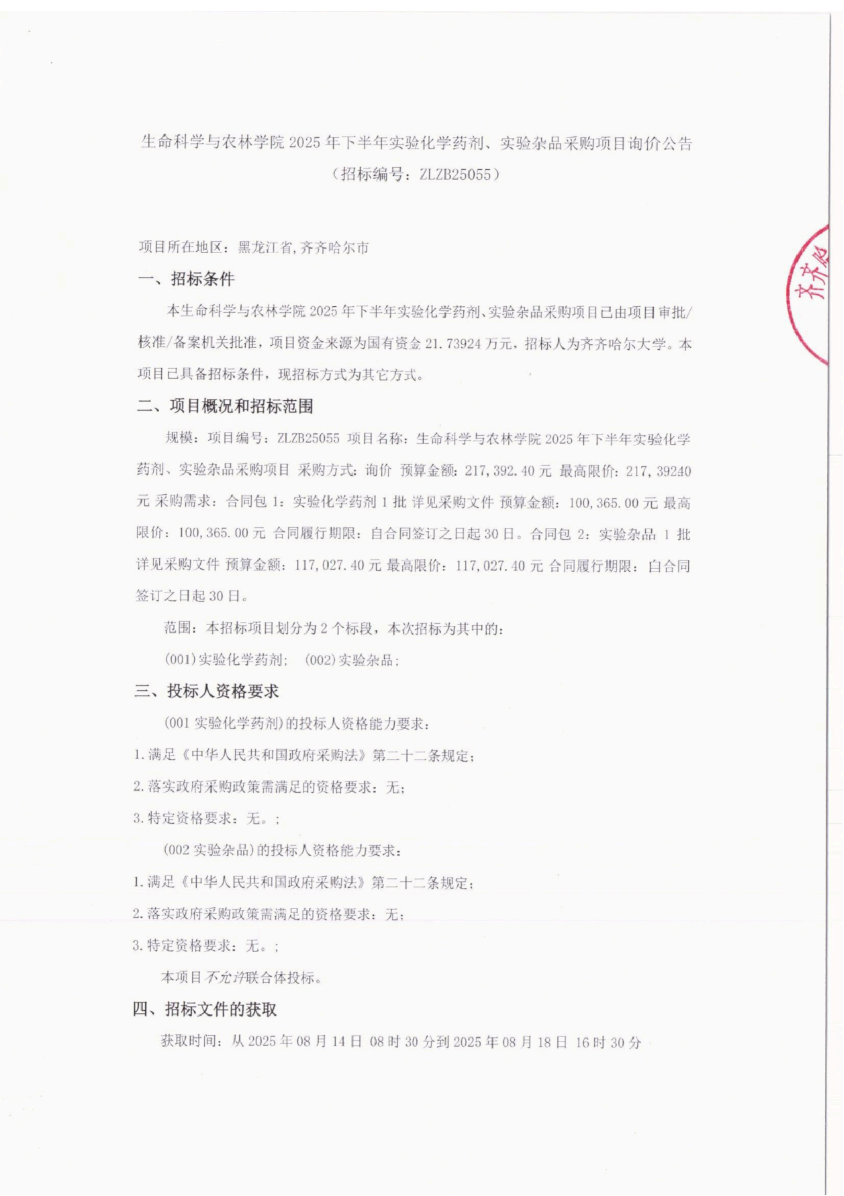 下一條:齊齊哈爾大學(xué)食堂洗碗設(shè)備采購(gòu)廢標(biāo)公告(轉(zhuǎn)自中國(guó)招標(biāo)投標(biāo)公共服務(wù)平臺(tái))