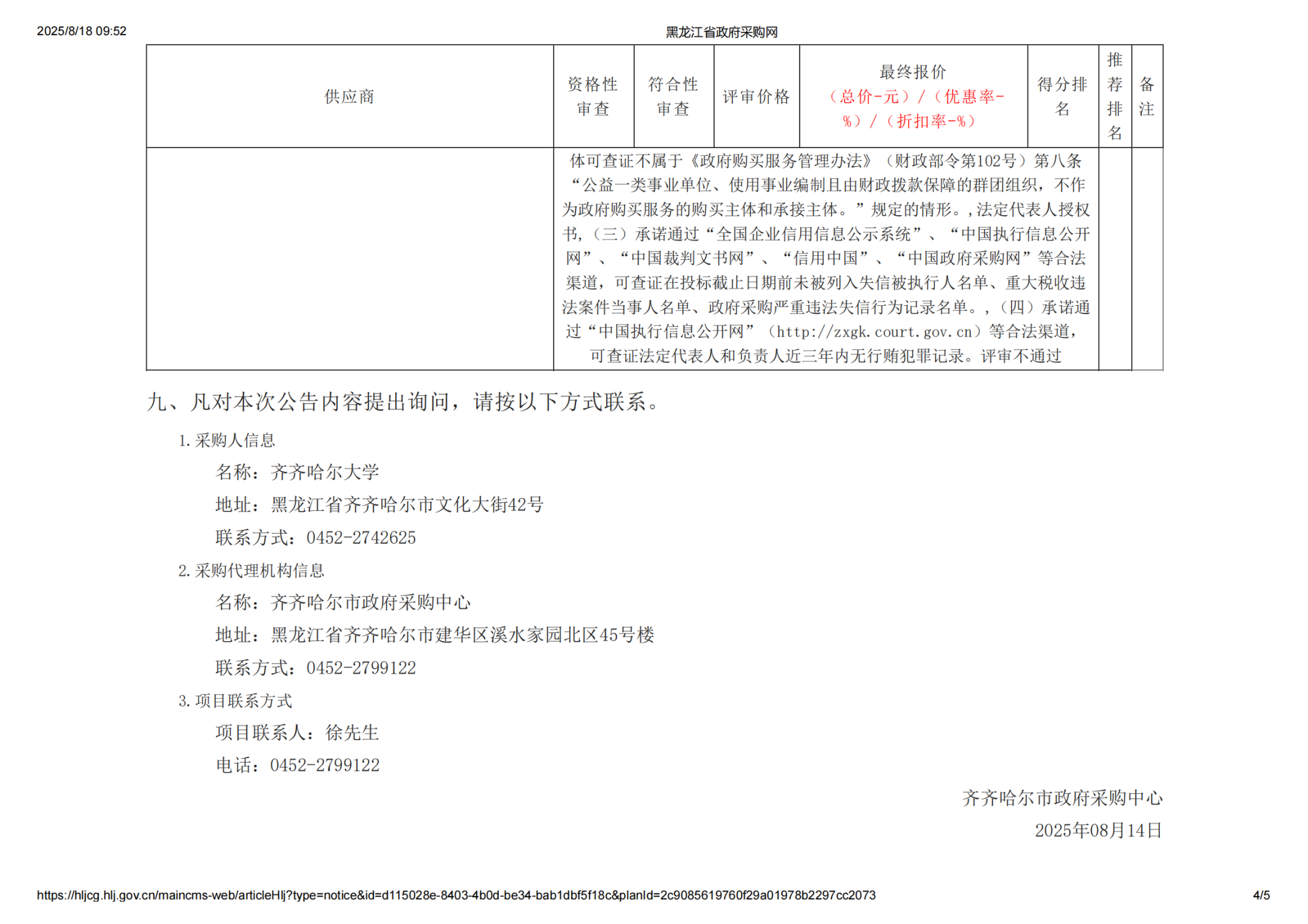 上一條:齊齊哈爾大學(xué)食堂洗碗設(shè)備采購(二次)競爭性談判公告(轉(zhuǎn)自中國招標(biāo)投標(biāo)公共服務(wù)平臺)