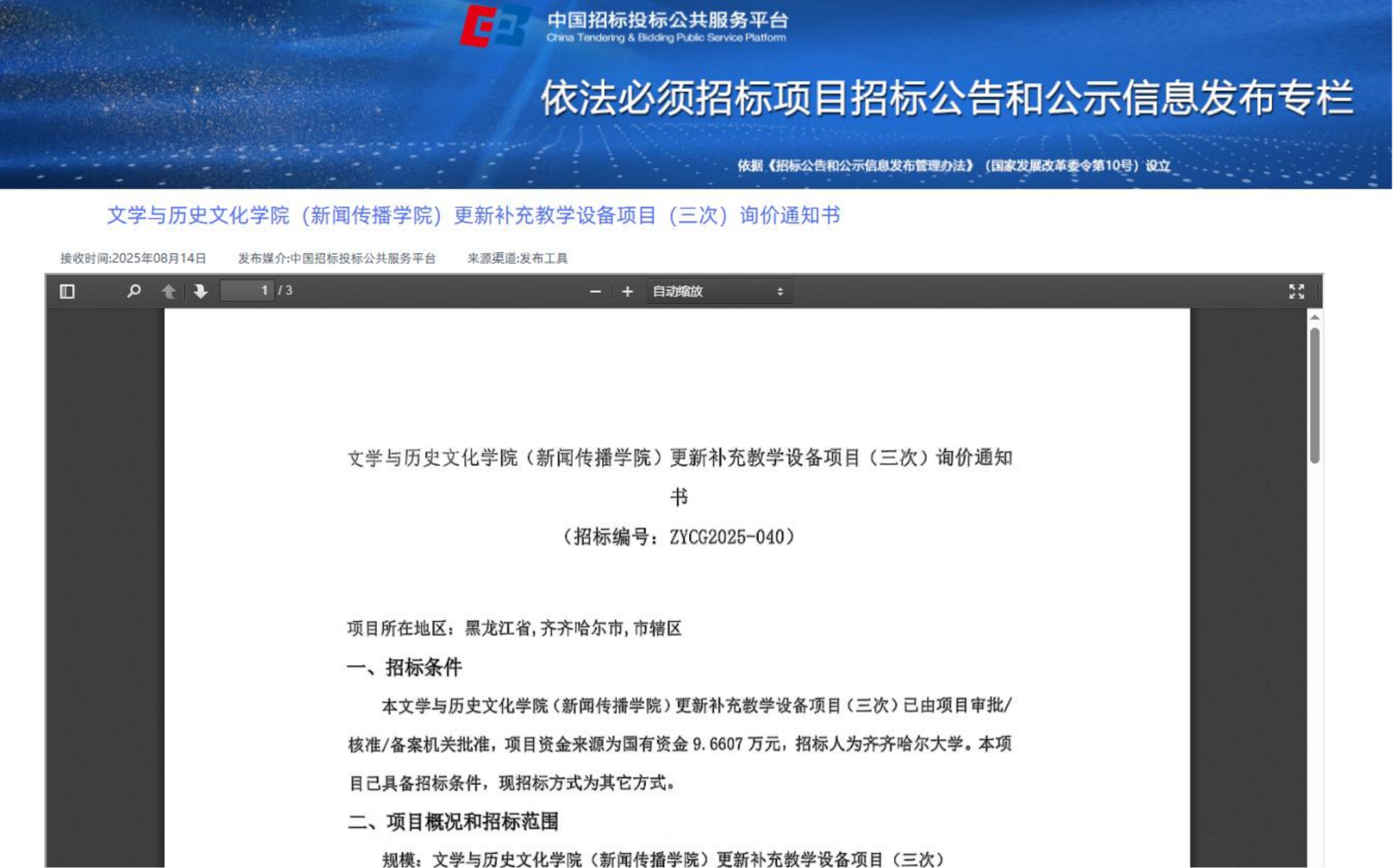 下一條:體育學院更新補充教學設(shè)備項目(三次)詢價通知書(轉(zhuǎn)自中國招標投標公共服務(wù)平臺)