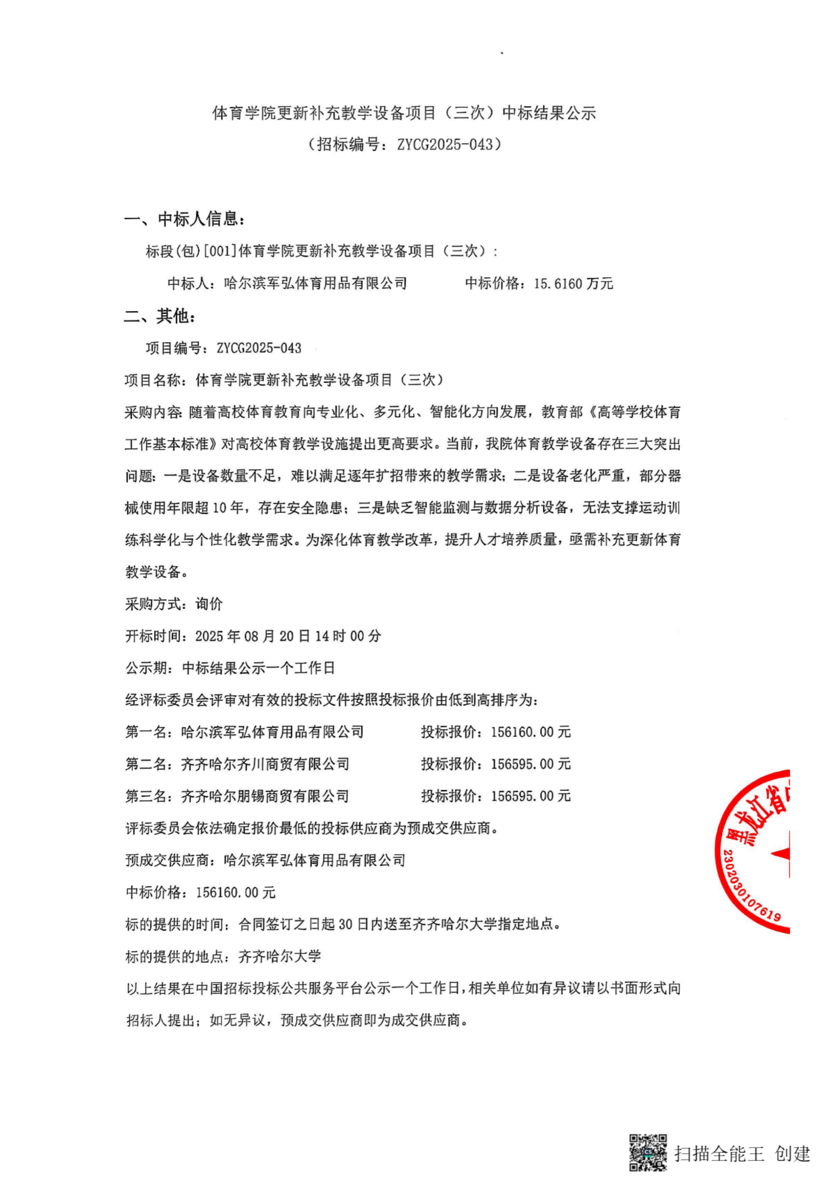 上一條:文學與歷史文化學院(新聞傳播學院)更新補充教學設備項目(三次)流標公告(轉自中國招標投標公共服務平臺)