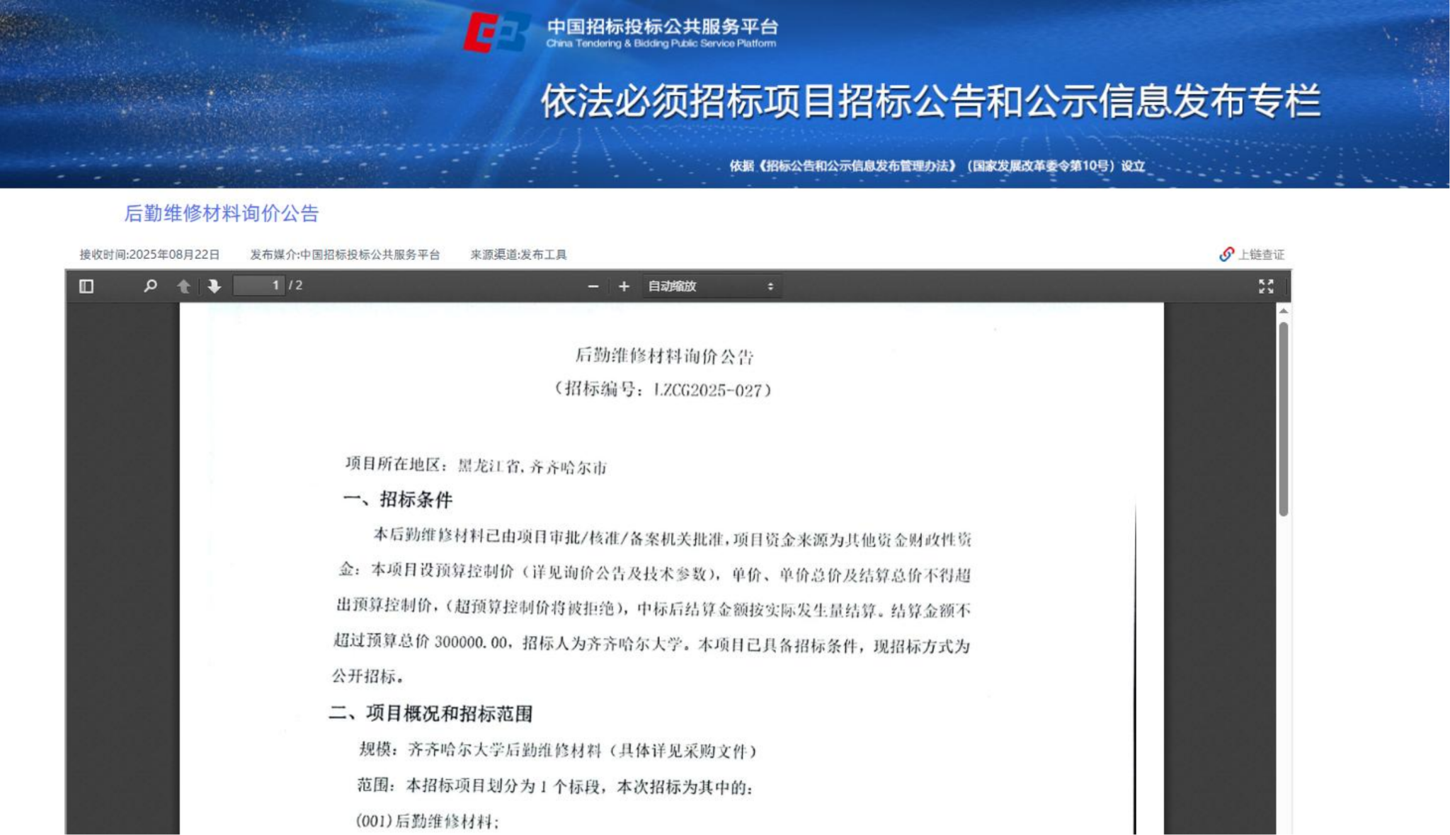 下一條:齊齊哈爾大學(xué)食堂洗碗設(shè)備采購(二次)成交結(jié)果公告(轉(zhuǎn)自中國招標(biāo)投標(biāo)公共服務(wù)平臺)
