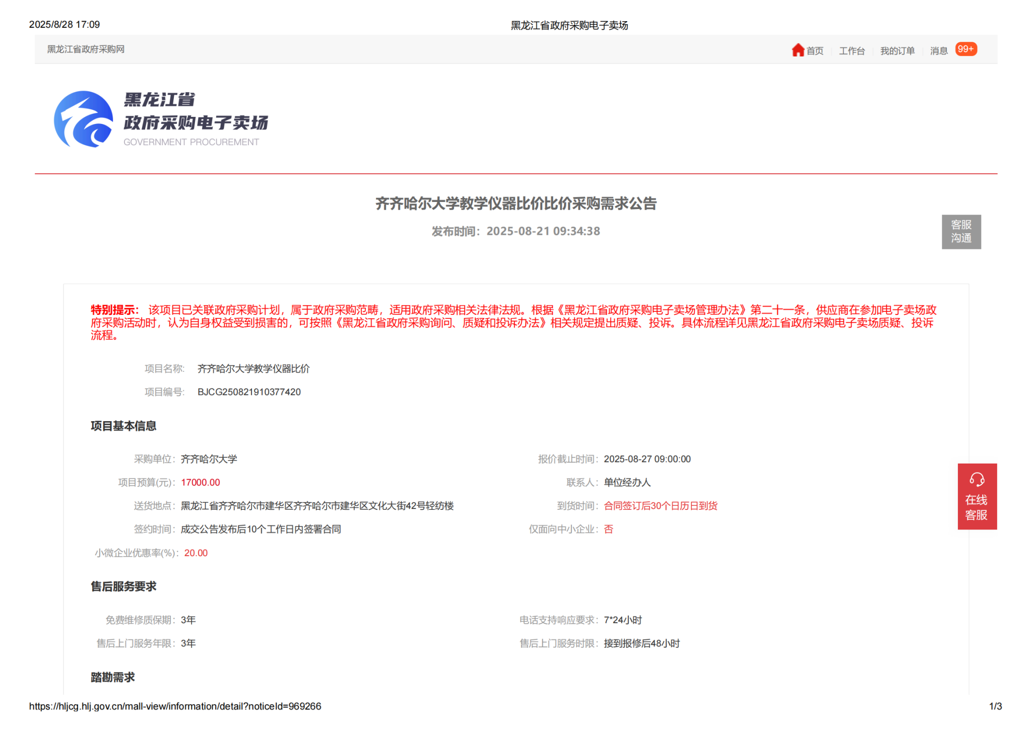 上一條:齊齊哈爾大學教學儀器比價采購廢標公告(轉自黑龍江省政府采購網)