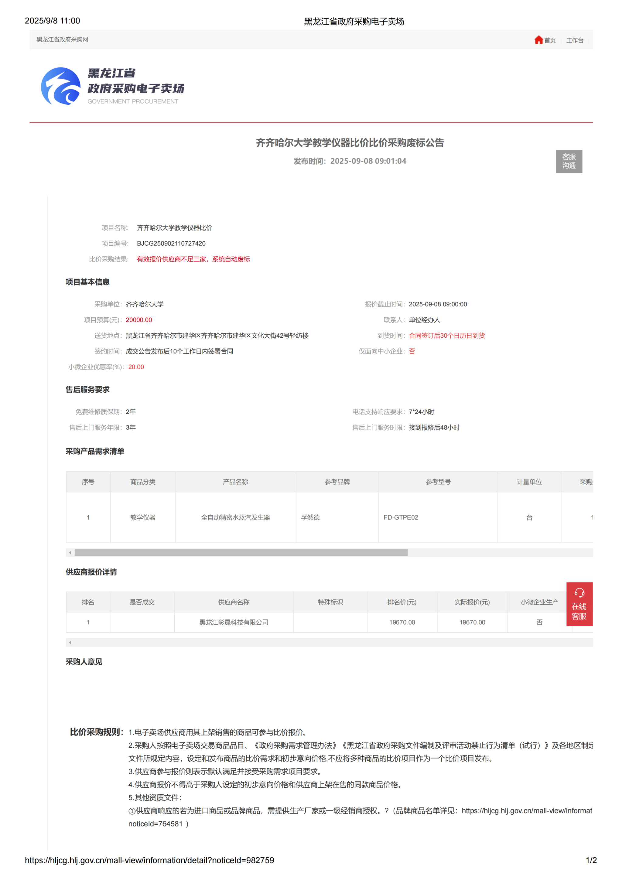 下一條:齊齊哈爾大學教學儀器比價采購廢標公告(轉(zhuǎn)自黑龍江省政府采購網(wǎng))