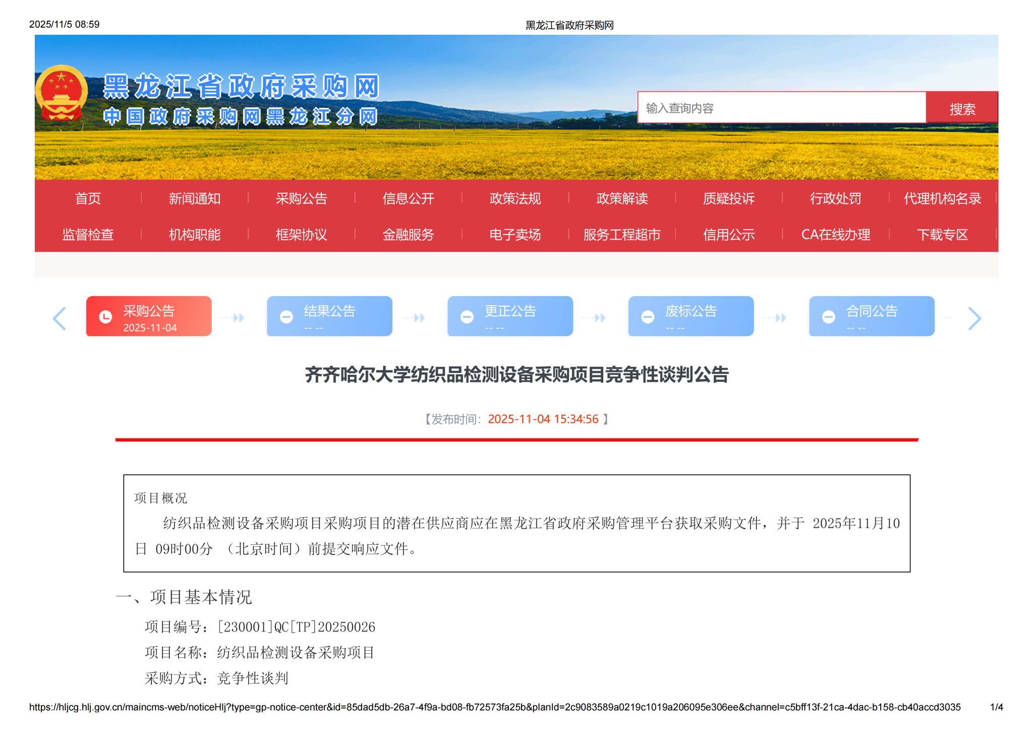 上一條:齊齊哈爾大學(xué)紡織品檢測設(shè)備采購項目結(jié)果公告(轉(zhuǎn)自黑龍江省政府采購網(wǎng))