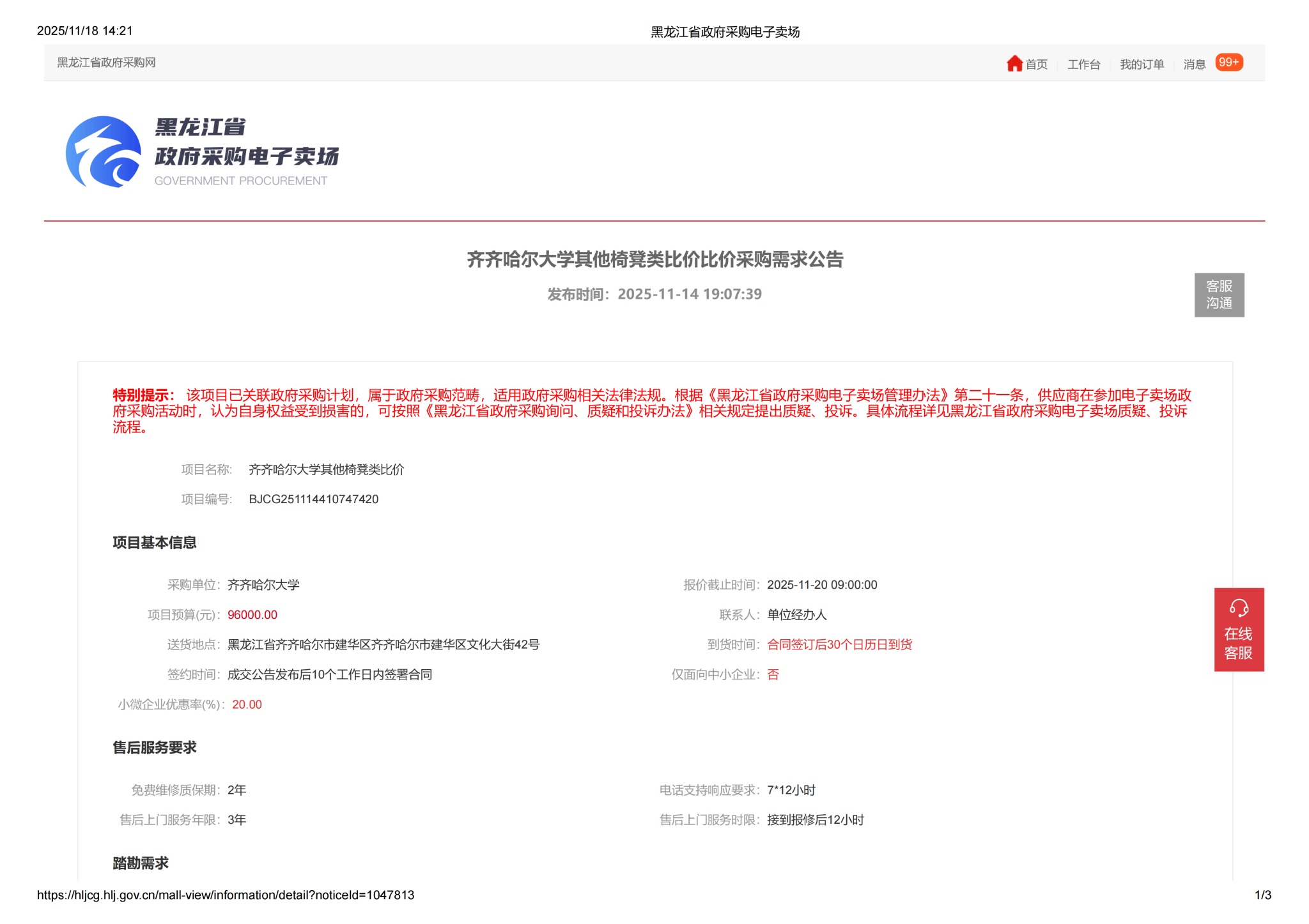 下一條:齊齊哈爾大學(xué)其他椅凳類比價采購需求公告(轉(zhuǎn)自黑龍江省政府采購網(wǎng))