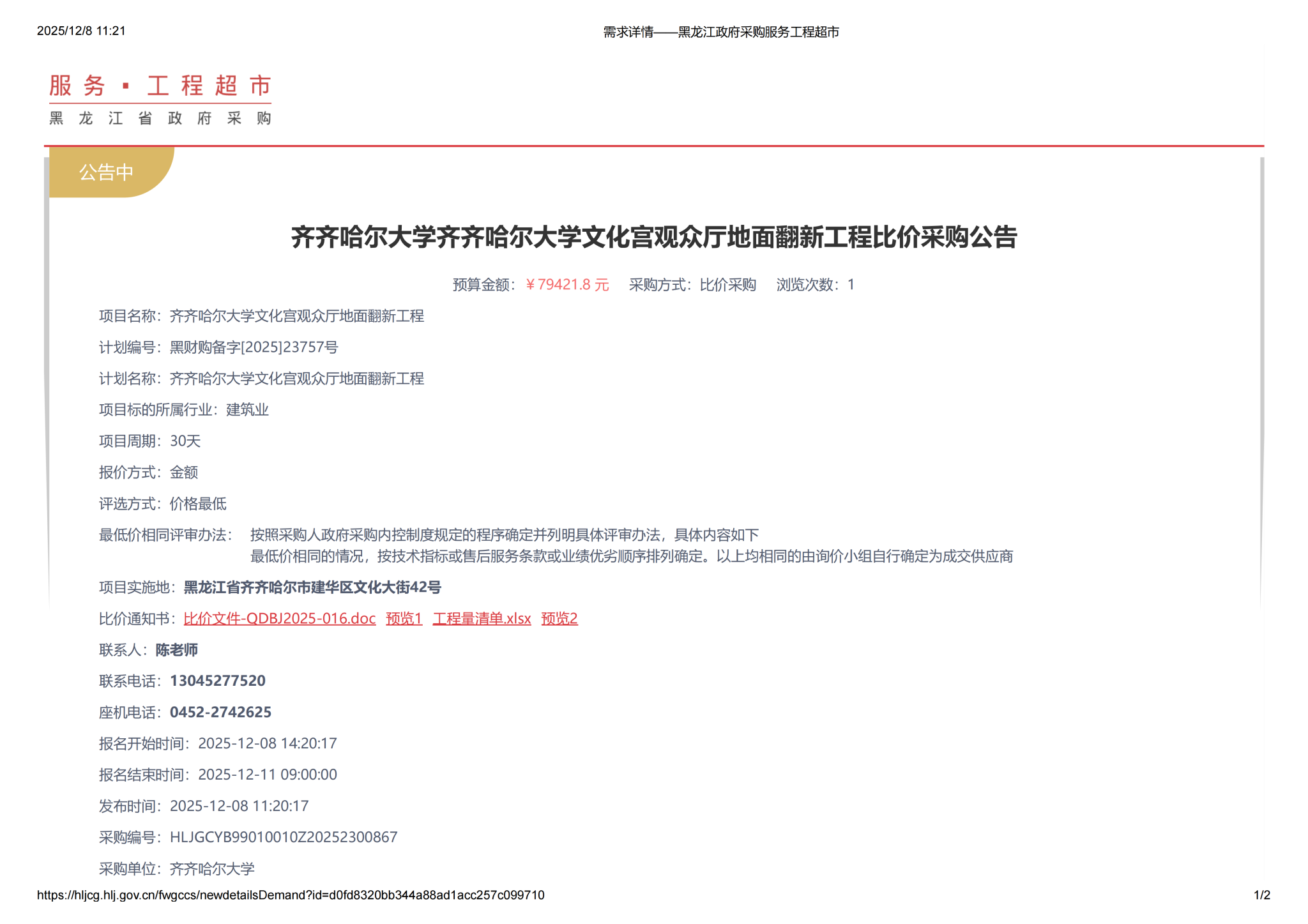 上一條:2025年齊齊哈爾大學(xué)“走讀式”談話室維修改造項(xiàng)目比價(jià)采購(gòu)公告(轉(zhuǎn)自黑龍江省政府采購(gòu)網(wǎng))