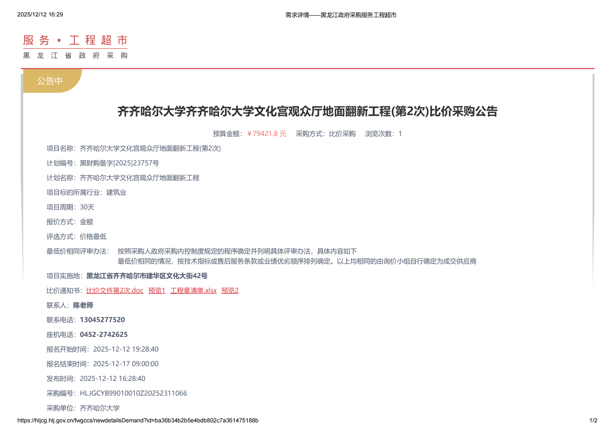 下一條:齊齊哈爾大學(xué)文化宮觀眾廳地面翻新工程終止公告(轉(zhuǎn)自黑龍江省政府采購網(wǎng))