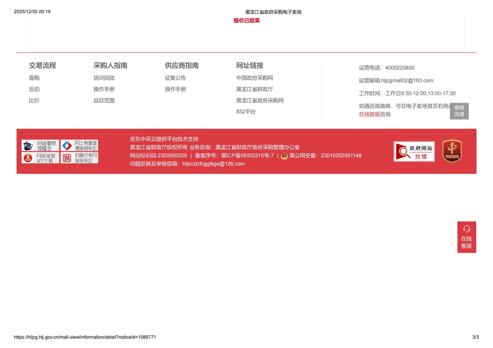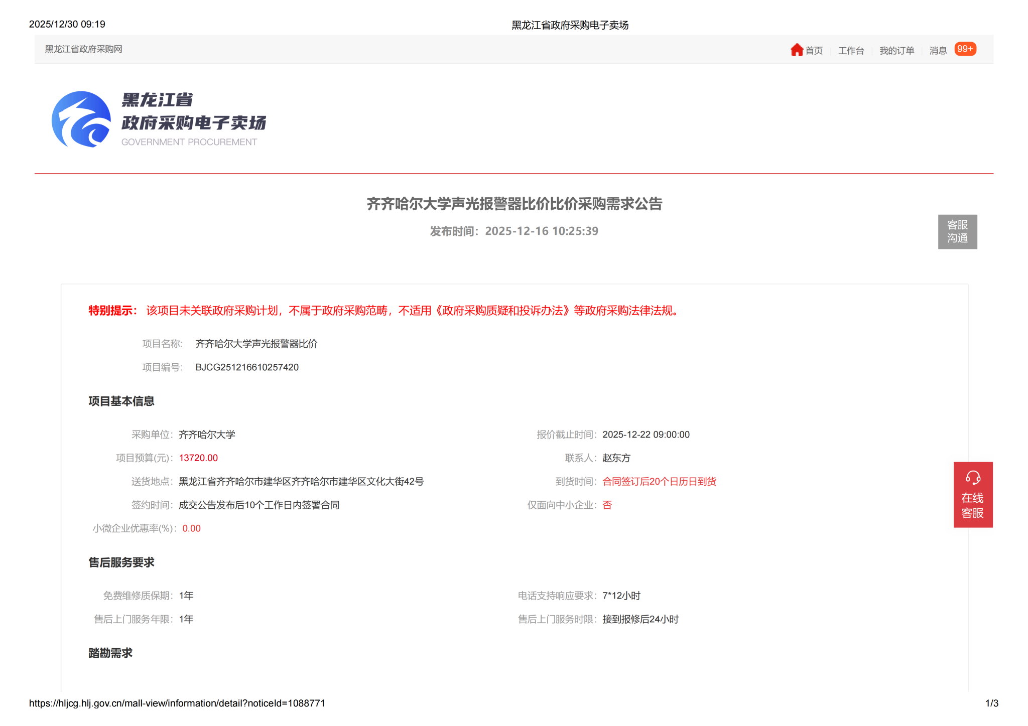上一條:齊齊哈爾大學聲光報警器比價采購廢標公告(一次)(轉自黑龍江省政府采購網(wǎng))