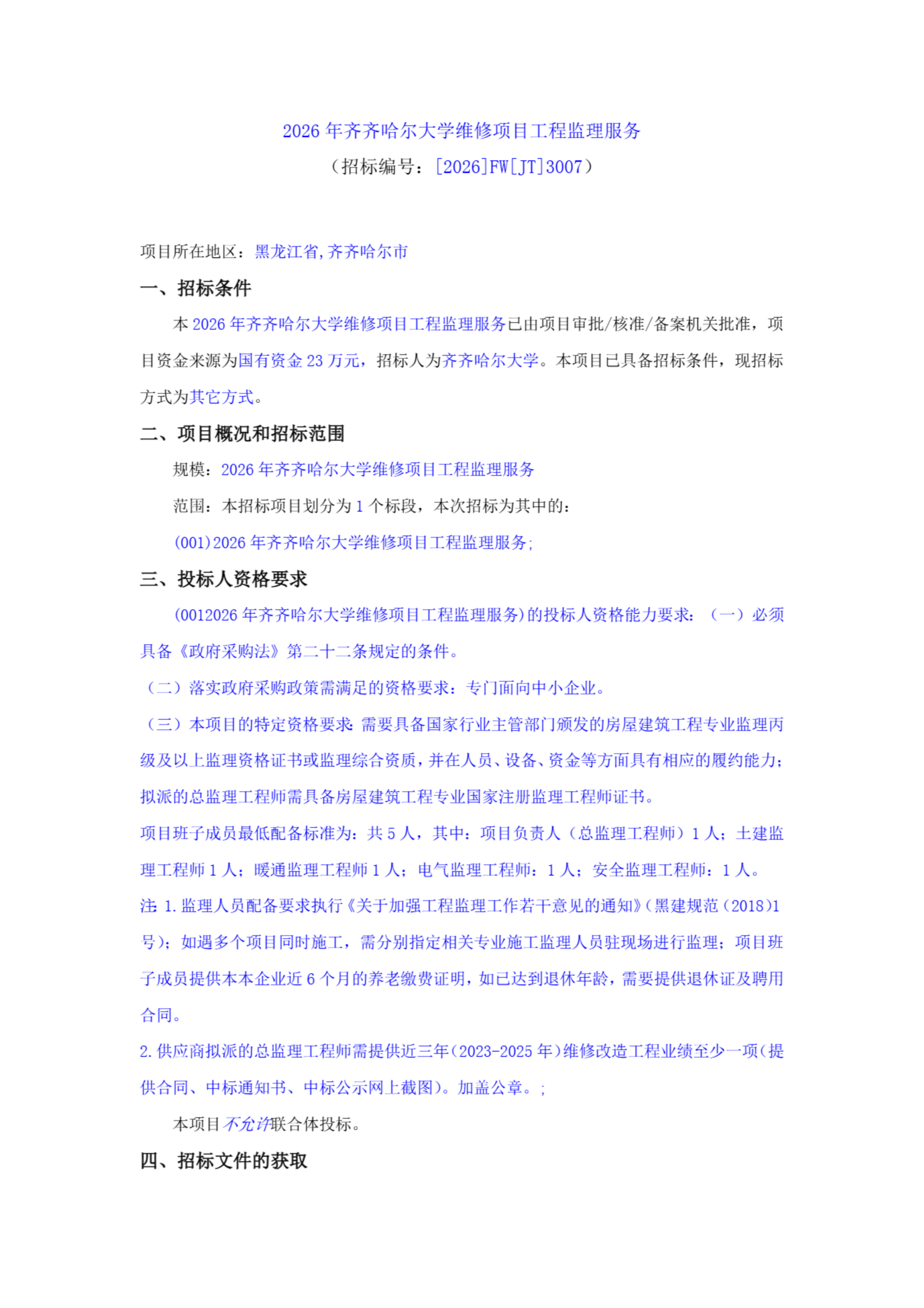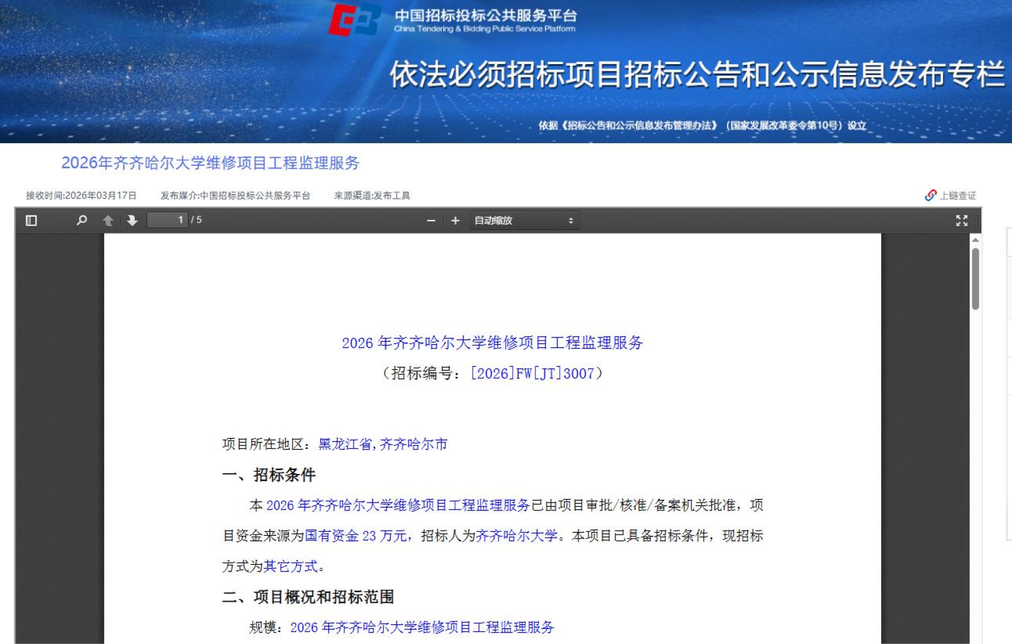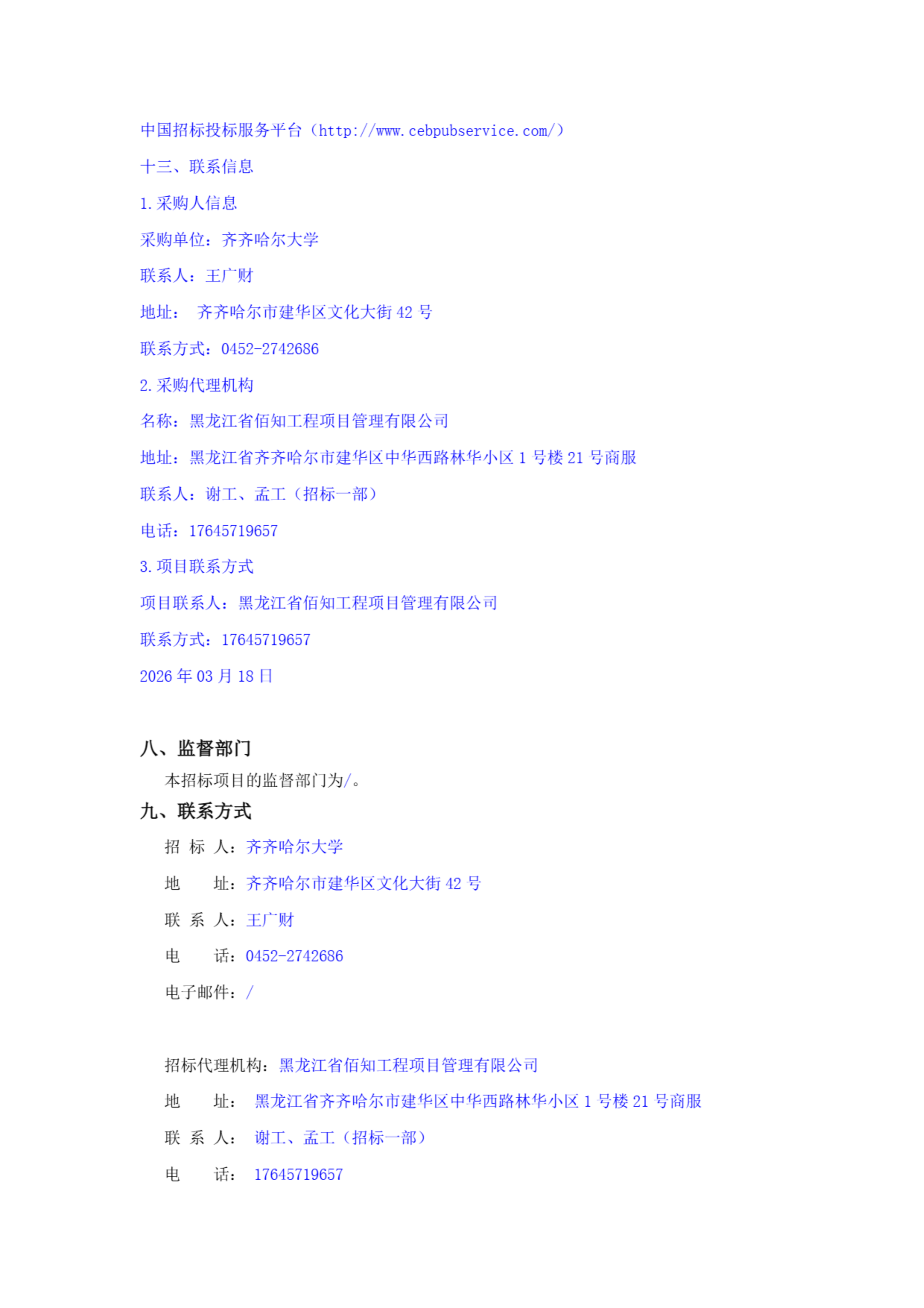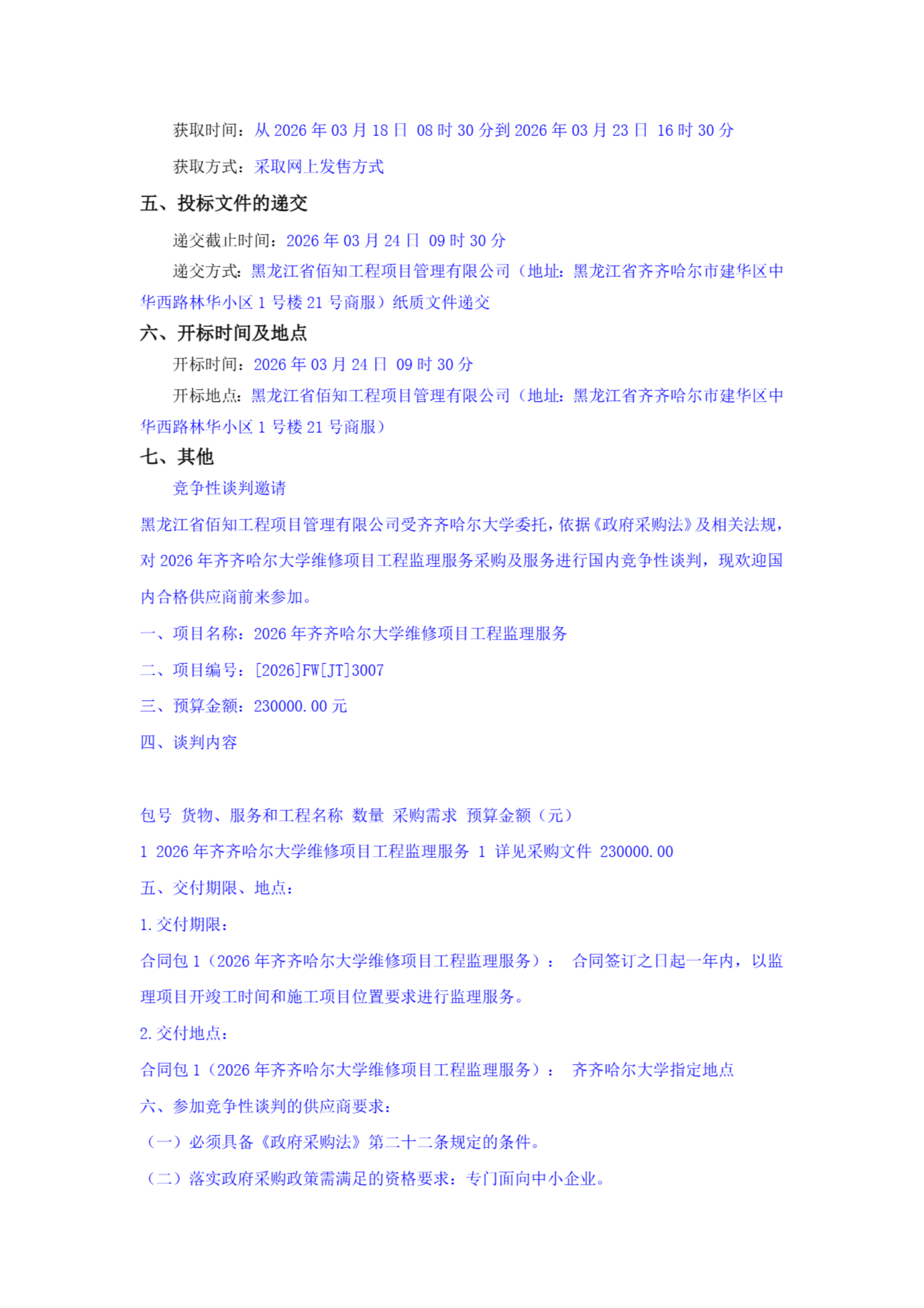 上一條:2026年齊齊哈爾大學維修項目工程監(jiān)理服務更正公告(轉自中國招標投標公共服務平臺)