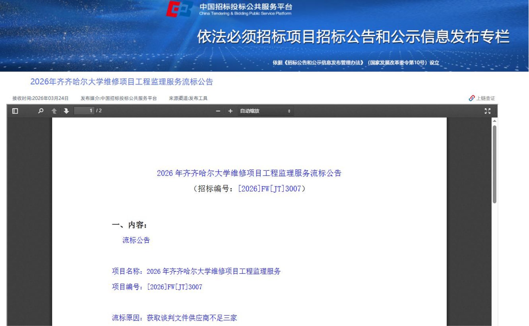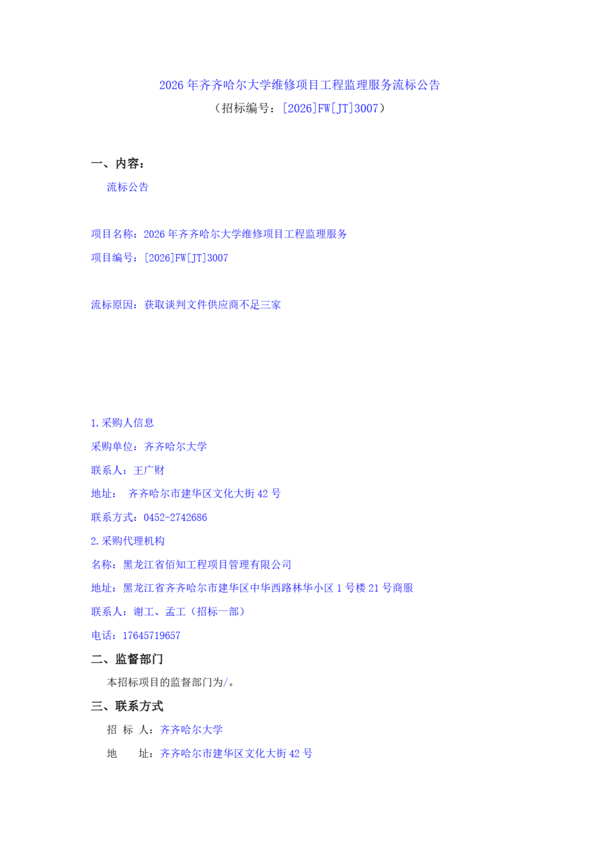 上一條:2026年齊齊哈爾大學(xué)維修項(xiàng)目工程監(jiān)理服務(wù)(二次)(轉(zhuǎn)自中國招標(biāo)投標(biāo)公共服務(wù)平臺)