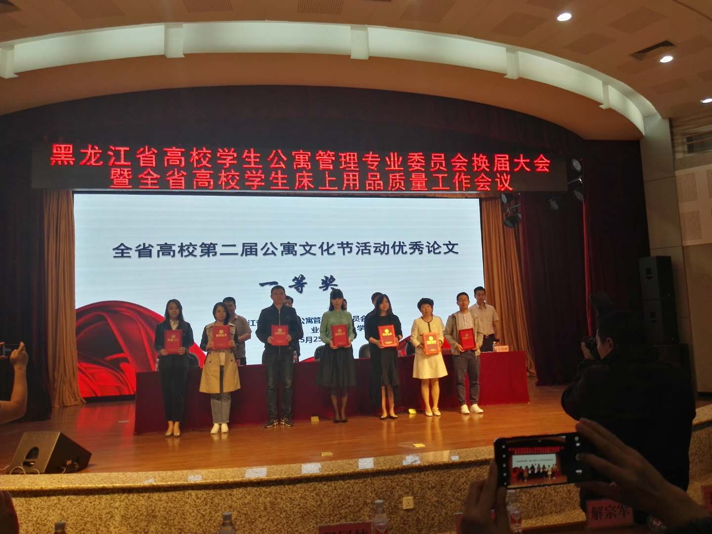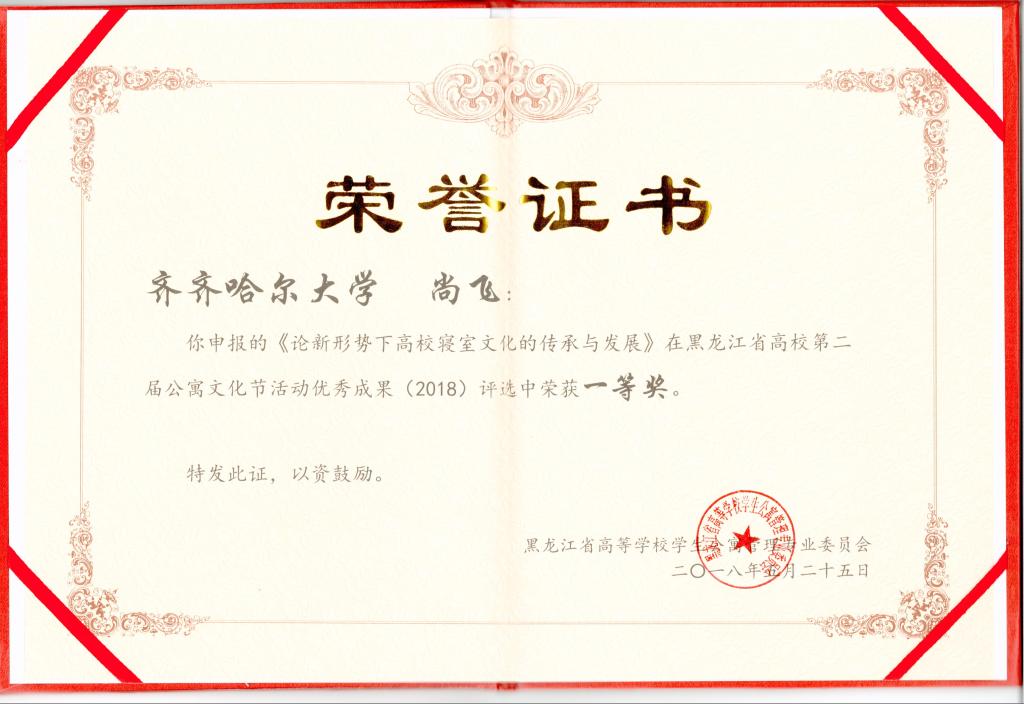 本次會議總結(jié)了第五屆省寓專會工作、安排部署了第六屆省寓專會工作,通報(bào)了2017年全省高校床上用品工作情況和安排部署2018年相關(guān)工作。大會同時(shí)表彰了全省高校第二屆公寓文化節(jié)活動優(yōu)秀成果。本屆公寓文化節(jié)活動優(yōu)秀成果評比從2017年10月開始征集材料,我校以第四屆“學(xué)生寢室節(jié)”為依托,組織開展了形式多樣、特色鮮明的公寓文化活動,引領(lǐng)大學(xué)生養(yǎng)成良好的生活習(xí)慣,樹立正確的人生觀和價(jià)值觀,充分發(fā)揮了學(xué)生公寓的育人功能。最終,我校選送的公寓文化節(jié)系列活動匯編喜獲“黑龍江省高校第二屆公寓文化節(jié)活動”優(yōu)秀成果一等獎,尚飛老師申報(bào)的論文《論新形勢下高校寢室文化的傳承與發(fā)展》喜獲“黑龍江省高校第二屆公寓文化節(jié)活動”優(yōu)秀論文一等獎。這是繼2017年我校榮獲全國高校學(xué)生公寓工作創(chuàng)新成果三等獎后的又一佳績。